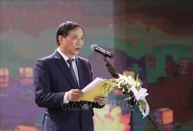 Chủ tịch UBND tỉnh Hòa Bình Bùi Văn Khánh phát biểu tại buổi lễ. Ảnh: Trọng Đạt/TTXVN