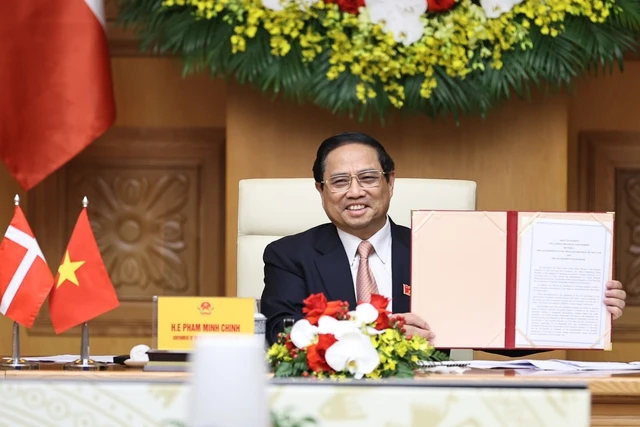 Ngài Phạm Minh Chính, Thủ tướng Chính phủ nước Cộng hòa Xã hội chủ nghĩa Việt Nam và Bà Mette Frederiksen, Thủ tướng Chính phủ Vương quốc Đan Mạch đã đồng chủ trì trực tuyến Lễ công bố thiết lập Quan hệ Đối tác Chiến lược Xanh giữa Chính phủ nước Cộng hòa xã hội chủ nghĩa Việt Nam và Chính phủ Đan Mạch (sau đây được gọi là "hai bên") vào ngày 01 tháng 11 năm 2023.