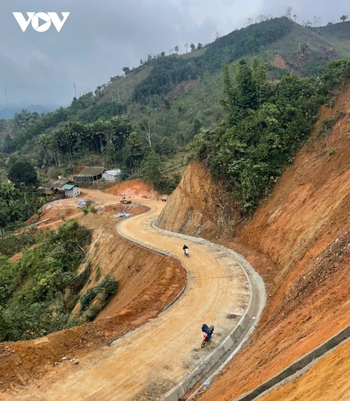 Sau bão lũ, chính quyền địa phương đã khắc phục tạm thời để đảm bảo giao thông thiết yếu. Do nguồn lực hạn chế, địa hình phức tạp, người dân vẫn mong mỏi có một tuyến đường mới để việc đi lại, giao thương thuận lợi.