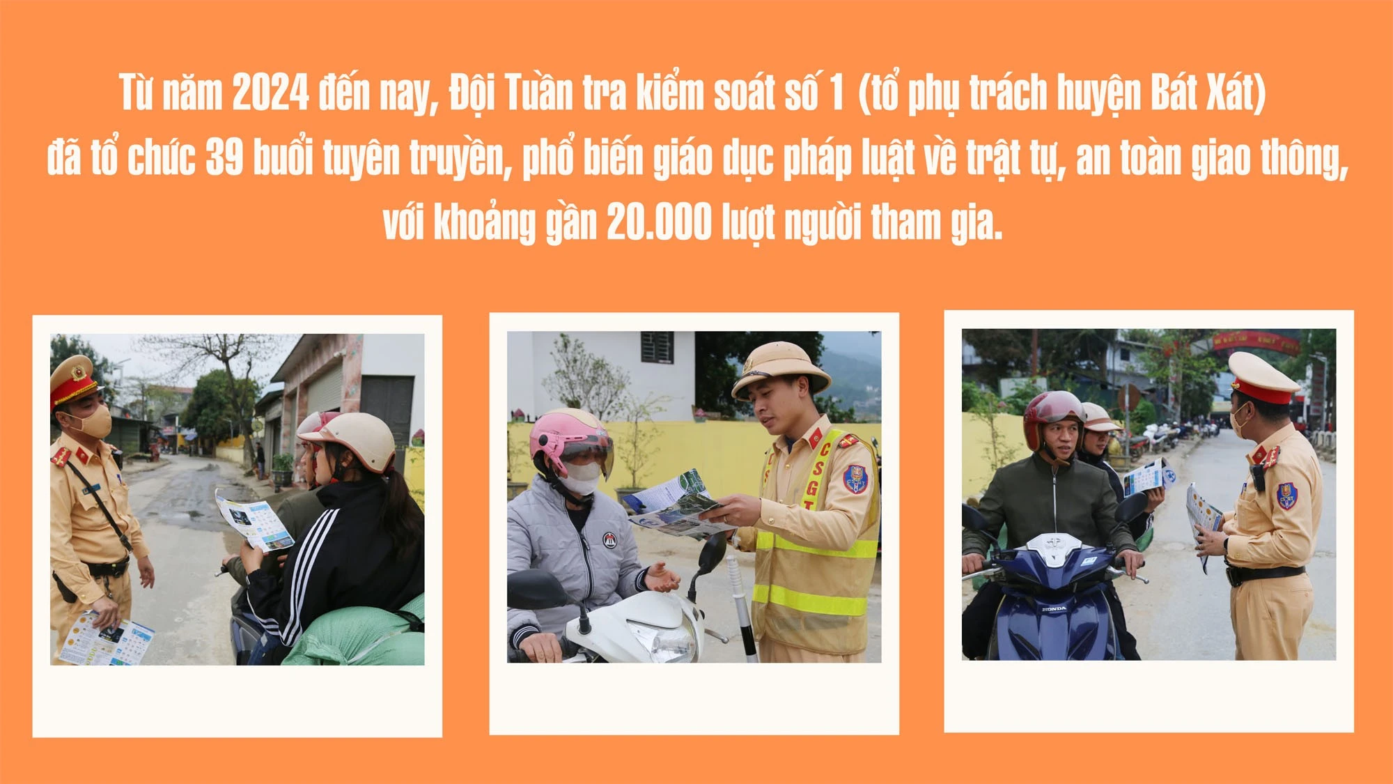 Theo báo cáo của Đội Tuần tra kiểm soát số 1 (tổ phụ trách huyện Bát Xát), từ năm 2024 đến nay đã tổ chức 39 buổi tuyên truyền, phổ biến giáo dục pháp luật về trật tự, an toàn giao thông, với gần 20.000 lượt người tham gia (năm 2024 tổ chức 35 buổi; năm 2025 tổ chức 4 buổi). Trong năm 2024, trên địa bàn huyện Bát Xát chỉ xảy ra 6 vụ tai nạn giao thông, làm 3 người chết, 5 người bị thương.