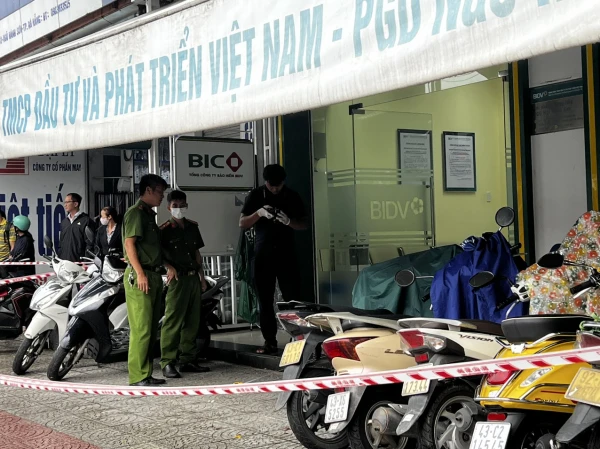 Hiện trường vụ cướp ngân hàng, đâm tử vong nhân viên bảo vệ.