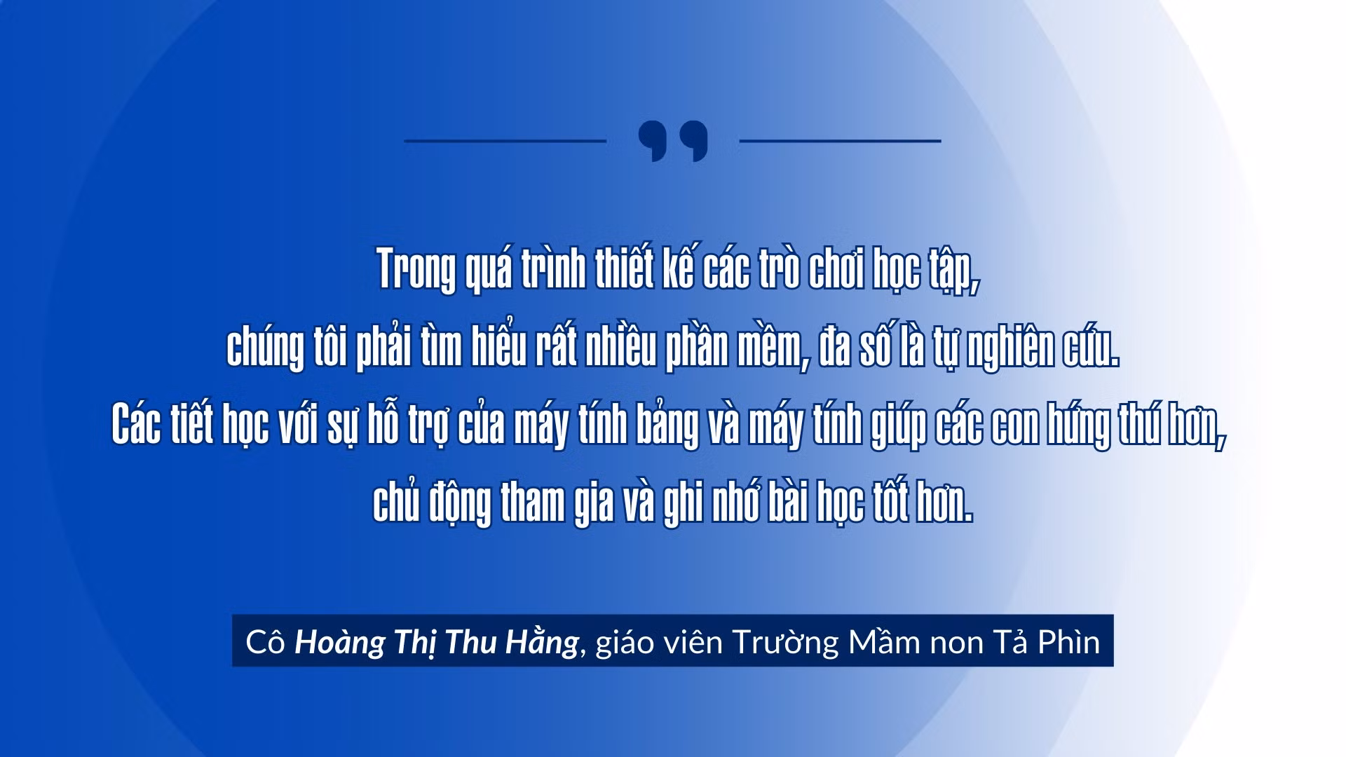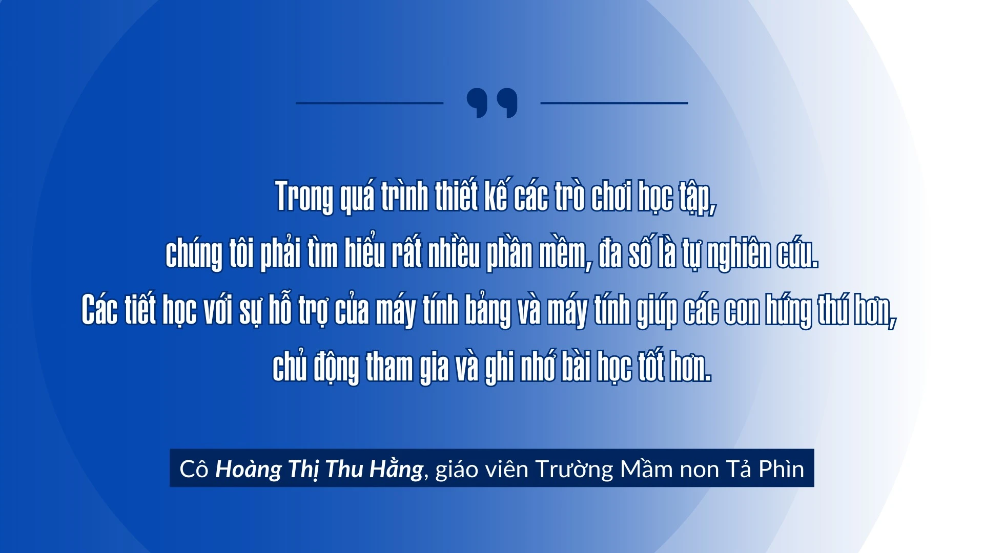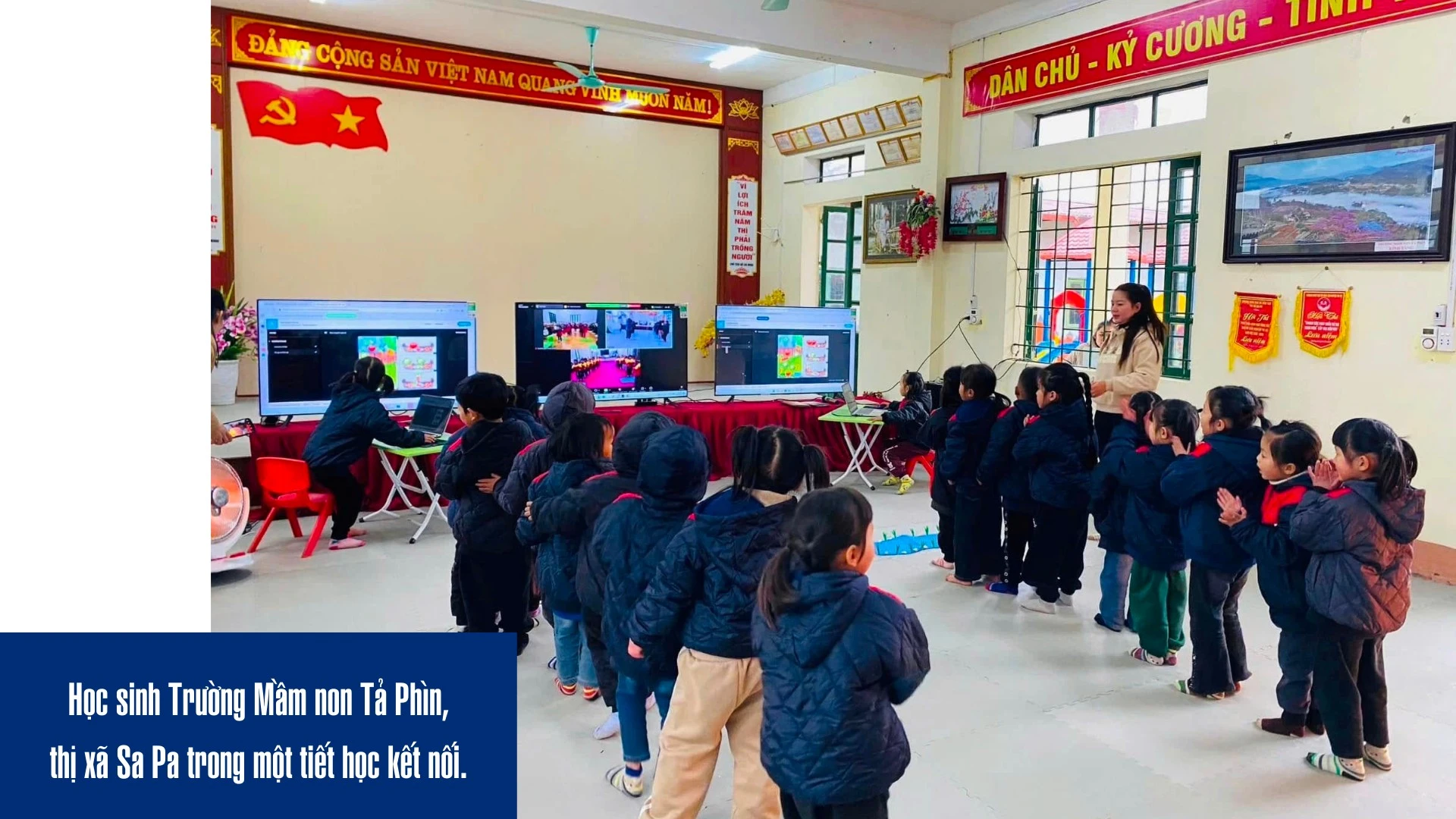 Tại Trường Mầm non Tả Phìn (thị xã Sa Pa), việc sử dụng các thiết bị điện tử và phần mềm học tập hiện đại cũng đã trở nên quen thuộc với cả giáo viên và học sinh. Thông qua các video sinh động, phần mềm trực quan và trò chơi giáo dục hấp dẫn, trẻ không chỉ tiếp thu kiến thức dễ dàng mà còn được khơi dậy niềm đam mê khám phá khoa học và công nghệ. Đặc biệt, các tiết học kết nối với các trường học trên địa bàn hay các tiết học tương tác thông qua các trò chơi Quiz trên máy tính bảng và máy tính mang lại phương pháp học tập thú vị, giúp trẻ vừa củng cố kiến thức vừa phát triển khả năng sáng tạo, tư duy nhanh nhạy và kỹ năng làm việc nhóm.