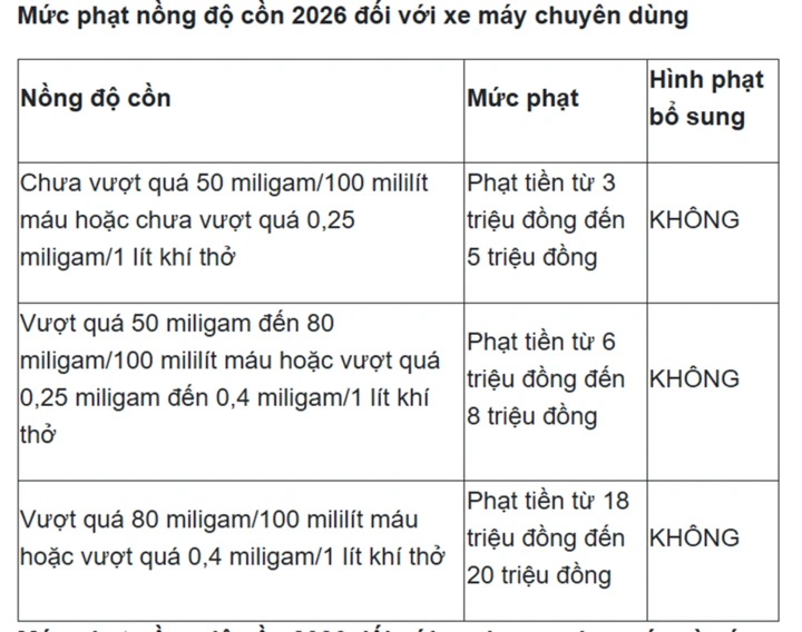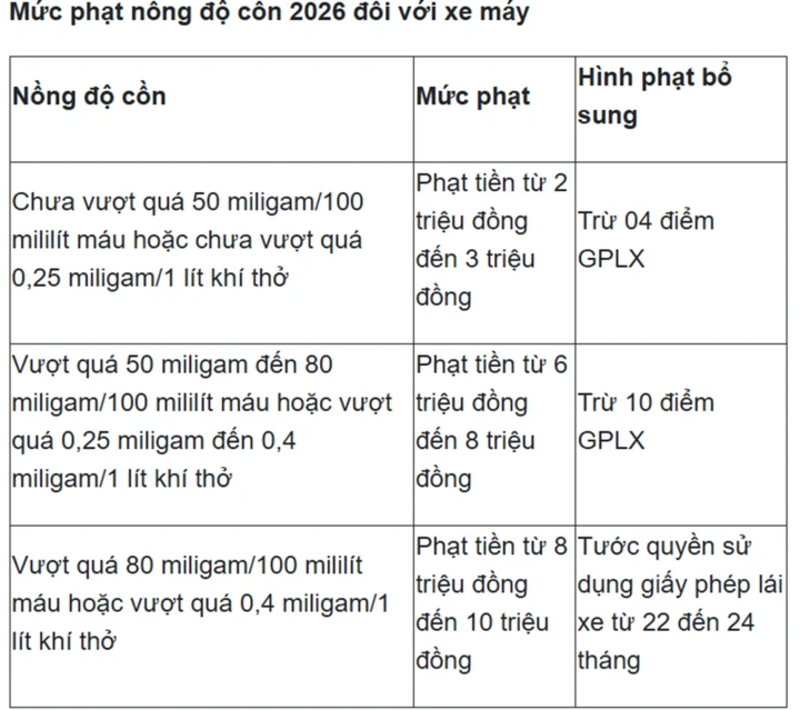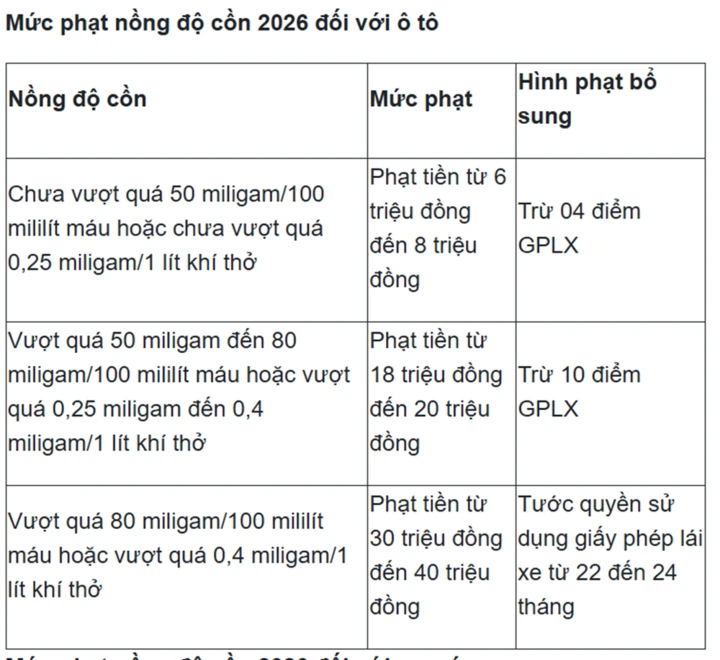 Chi tiết mức phạt nồng độ cồn 2026 đối với tất cả các loại xe