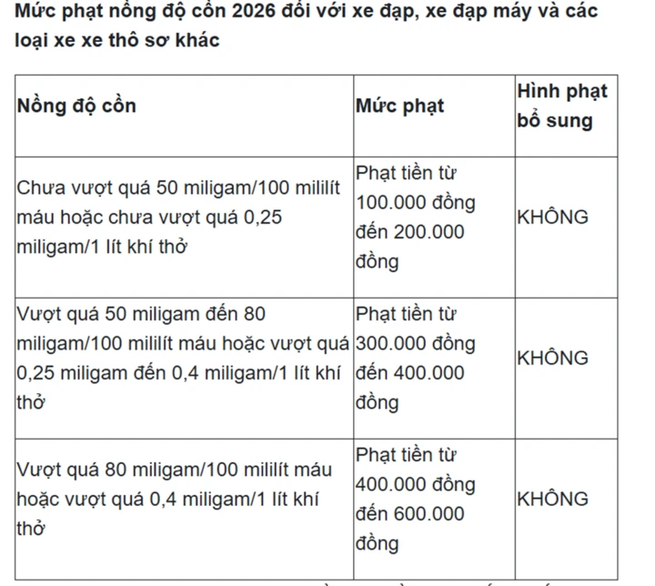 Mức phạt xe đạp, xe đạp máy, xe thô sơ vi phạm nồng độ cồn.