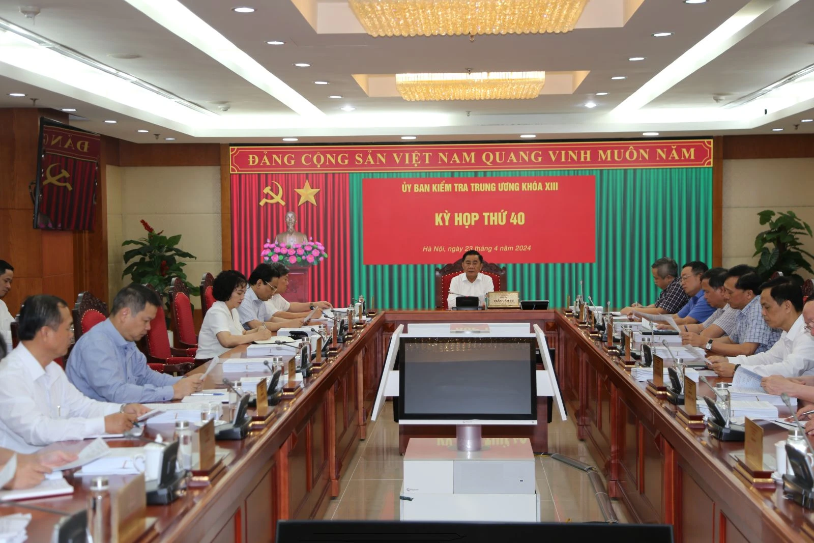 Đồng chí Trần Cẩm Tú, Ủy viên Bộ Chính trị, Bí thư Trung ương Đảng, Chủ nhiệm Ủy ban Kiểm tra Trung ương chủ trì Kỳ họp thứ 40. Ảnh: UBKTTW