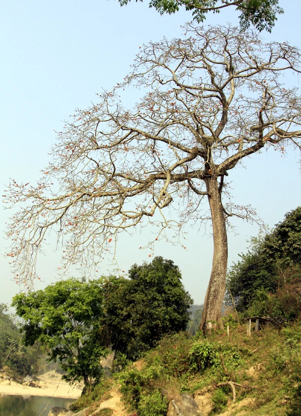 Từ khoảng cách hàng giờ đi bộ đã thấy cây gạo vươn cao lên nền trời, vượt hẳn những chỏm núi đá lúp xúp, nhọn hoắt. Nhiều người dân ở đây nói vào mùa cây gạo nở hoa, đỏ rực như bó đuốc, là hoa tiêu của thung lũng Trung Đô gọi chim, bướm về hút mật. Cách bến đò Trung Đô không xa, cây gạo to lớn, cổ kính, cây bao nhiêu tuổi thì những vị cao niên nhất vùng cho rằng, khi còn nhỏ đã thấy cây gạo lớn lắm rồi.