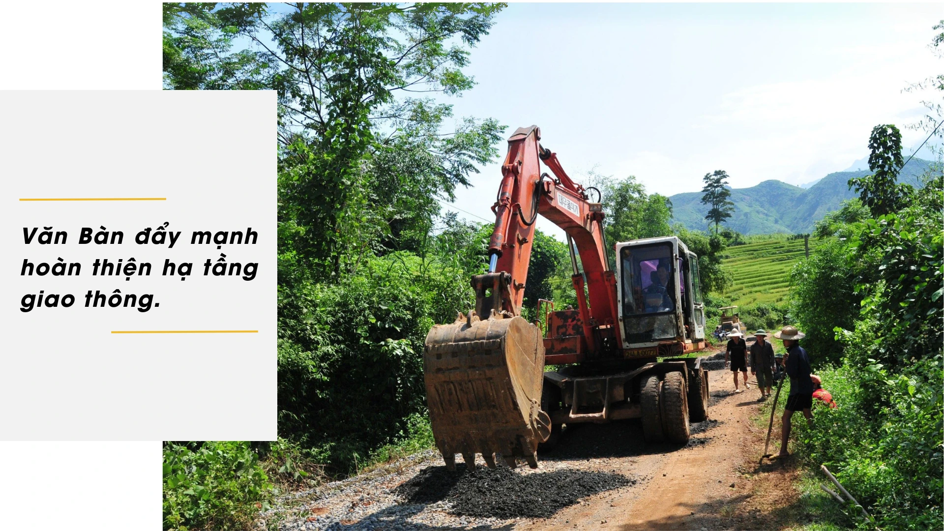 Về thực hiện 2 mũi đột phá là phát triển giao thông, xây dựng hạ tầng đô thị và quy hoạch, sắp xếp dân cư, cuối năm 2020, Ban Chấp hành Đảng bộ Văn Bàn ban hành Đề án 03 về “Phát triển mạng lưới giao thông, xây dựng các đô thị huyện Văn Bàn giai đoạn 2021 - 2025, tầm nhìn đến năm 2030”. Trên cơ sở quy hoạch chung và chương trình phát triển đô thị được duyệt, huyện triển khai lập các quy hoạch chi tiết, gồm: Quy hoạch khu đô thị mới phía Bắc, phía Nam thị trấn Khánh Yên (thị trấn sẽ được mở rộng gấp đôi, lên 1.500 ha) để triển khai các dự án đầu tư phát triển đô thị.