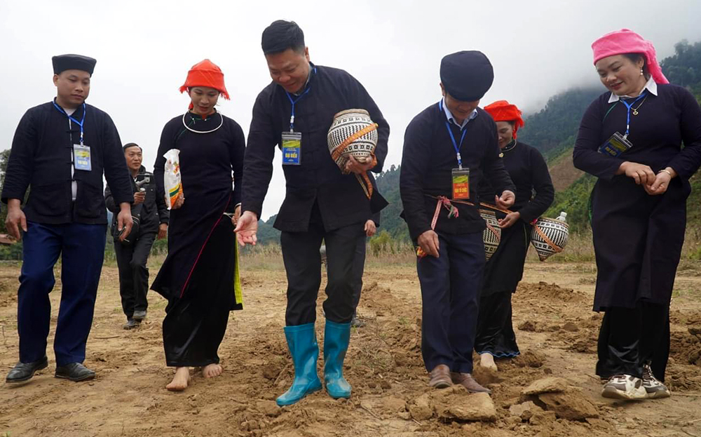Lãnh đạo huyện Văn Yên và bà con nhân dân tra hạt xông đất, cầu cho mùa màng tốt tươi.