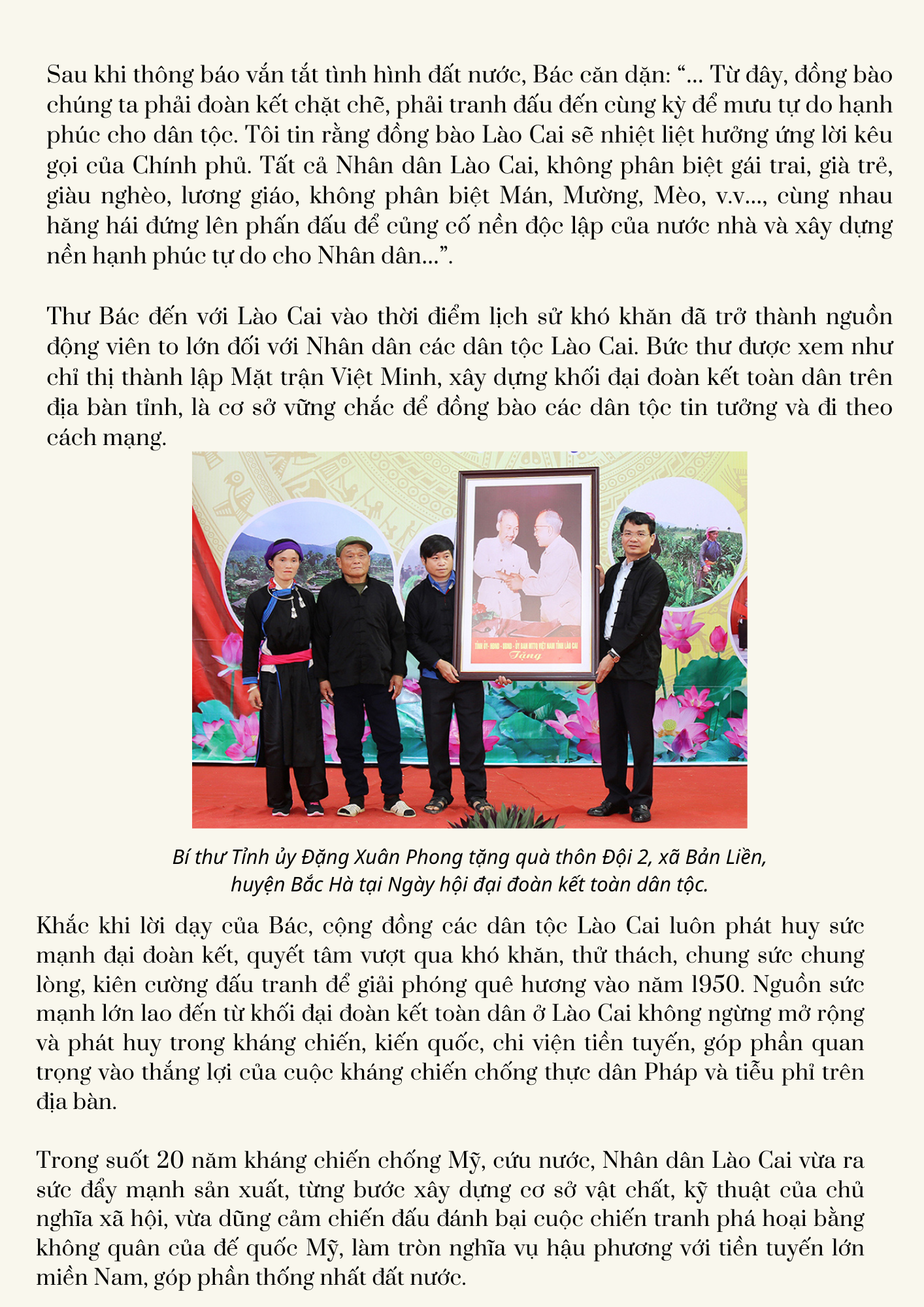 Sự kiện Bác Hồ cùng phái đoàn của Chính phủ lên thăm Lào Cai - Yên Bái vào mùa thu cách đây 67 năm không chỉ có ý nghĩa lịch sử đặc biệt với địa phương mà còn là kỷ niệm đậm sâu, ký ức thiêng liêng không bao giờ quên đối với những người may mắn được gặp Bác.