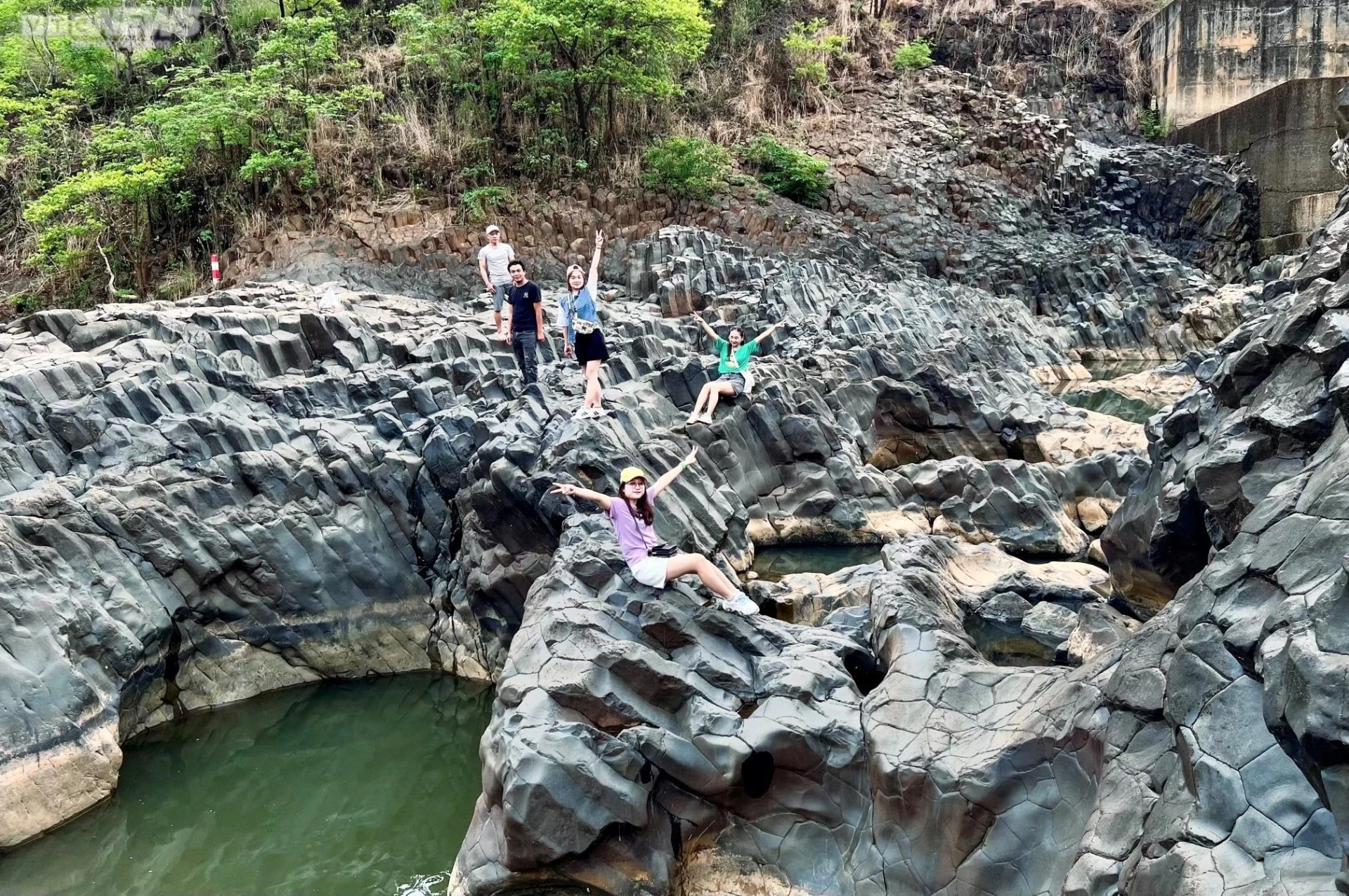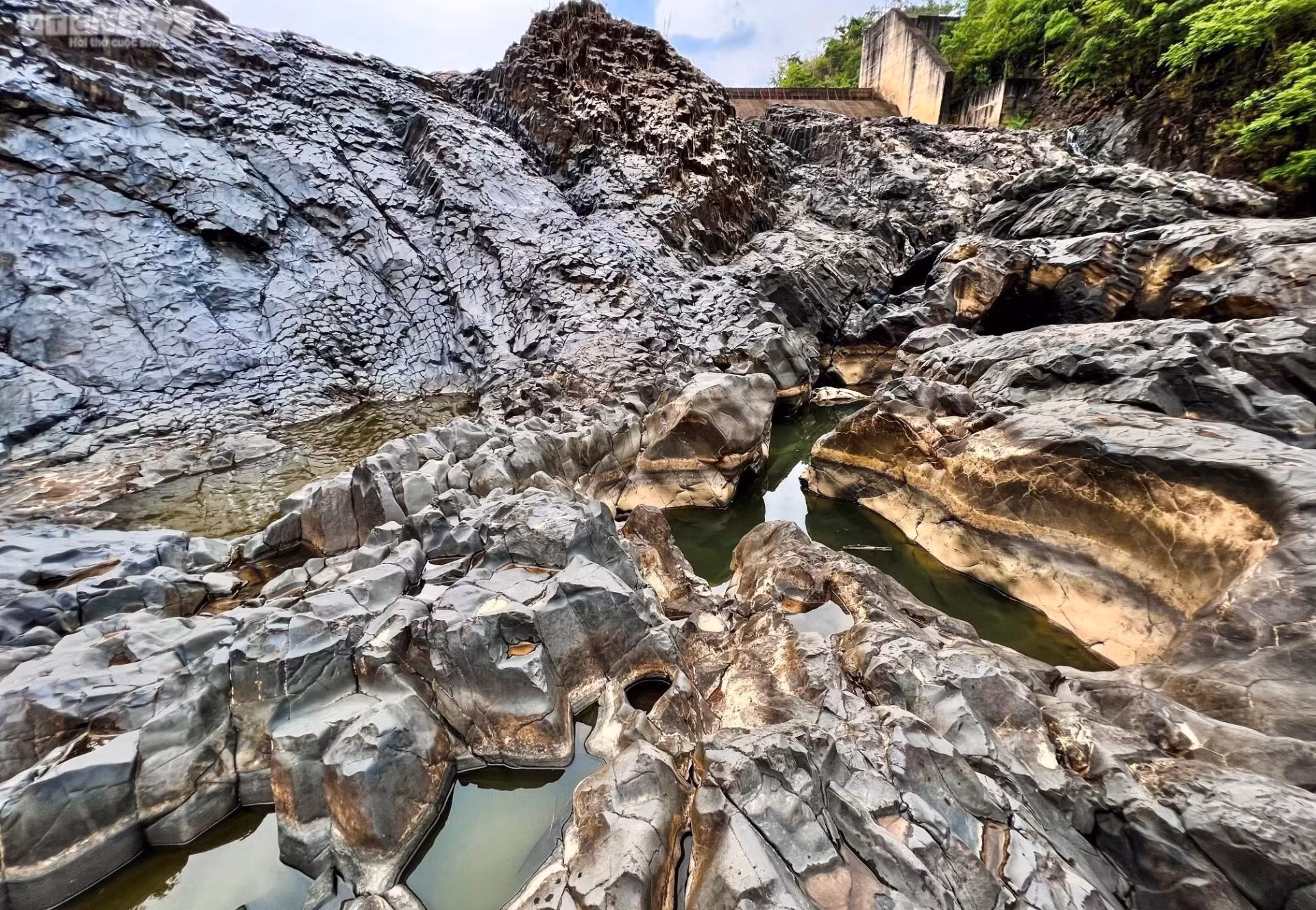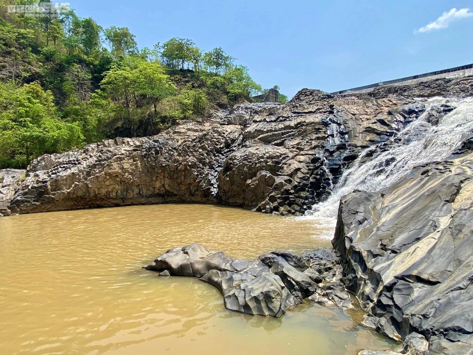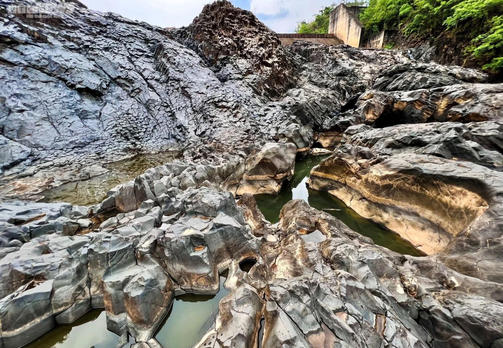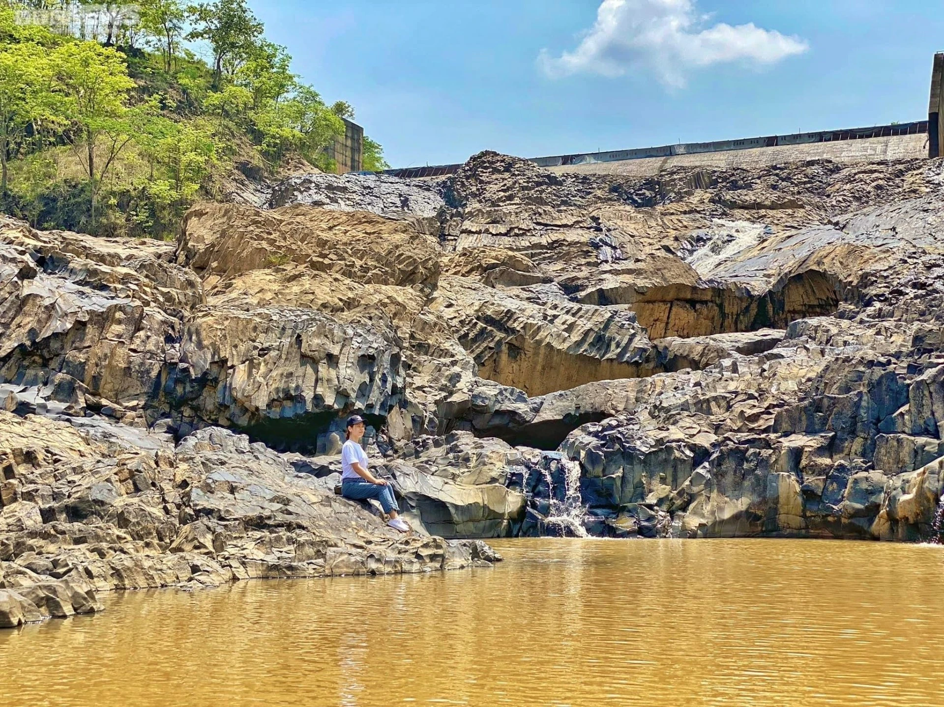 Bãi đá nằm cạnh bờ đập tràn thủy điện H'chan.