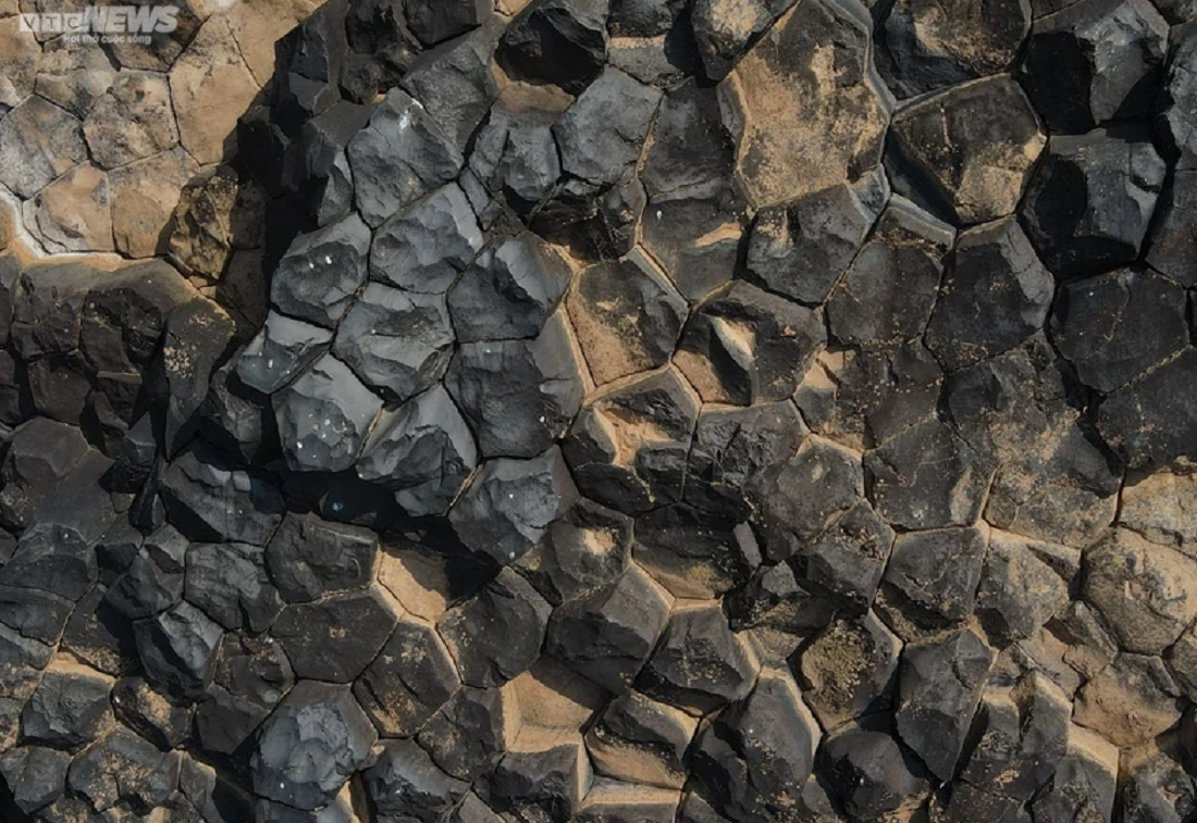 Nhìn gần, những trụ đá hình lục lăng xếp cạnh nhau trông như một tổ ong khổng lồ.