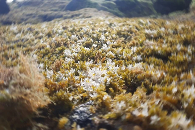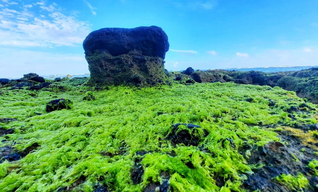 Mùa này, những bãi đá nham thạch trên đảo Lý Sơn đều bị rêu bao phủ.