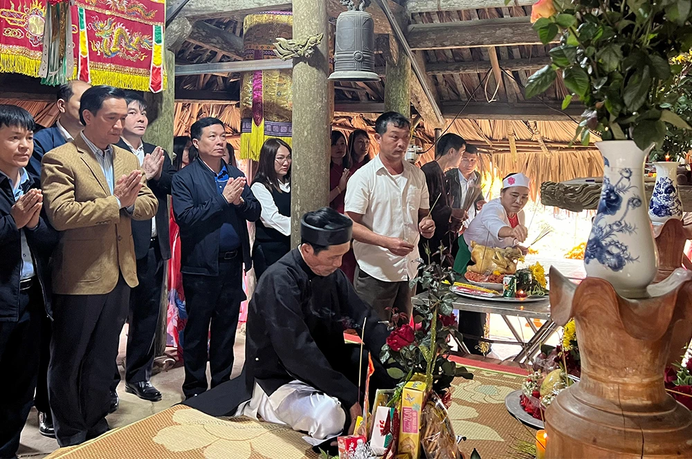 Lãnh đạo huyện Trấn Yên, nhân dân chiêm bái cầu một năm mưa thuận gió hòa, mùa màng tươi tốt.