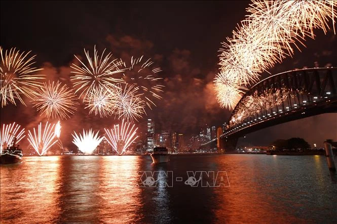 Trình diễn pháo hoa đón Năm mới tại Cầu cảng Sydney, Australia, ngày 1/1/2024.