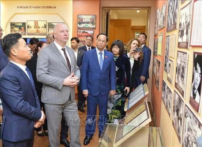 Chủ tịch Quốc hội Bulgaria Rossen Jeliazkov thăm quan Phòng truyền thống của Đại học Quốc gia Hà Nội.