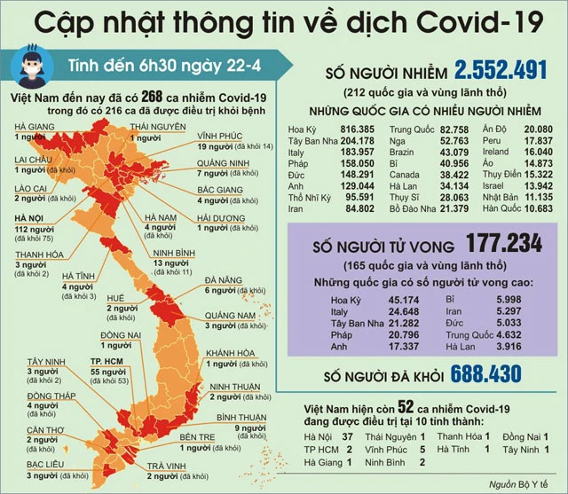 Như vậy, tính đến nay, cả nước đã có tổng cộng 225 bệnh nhân mắc Covid-19 được công bố khỏi bệnh.