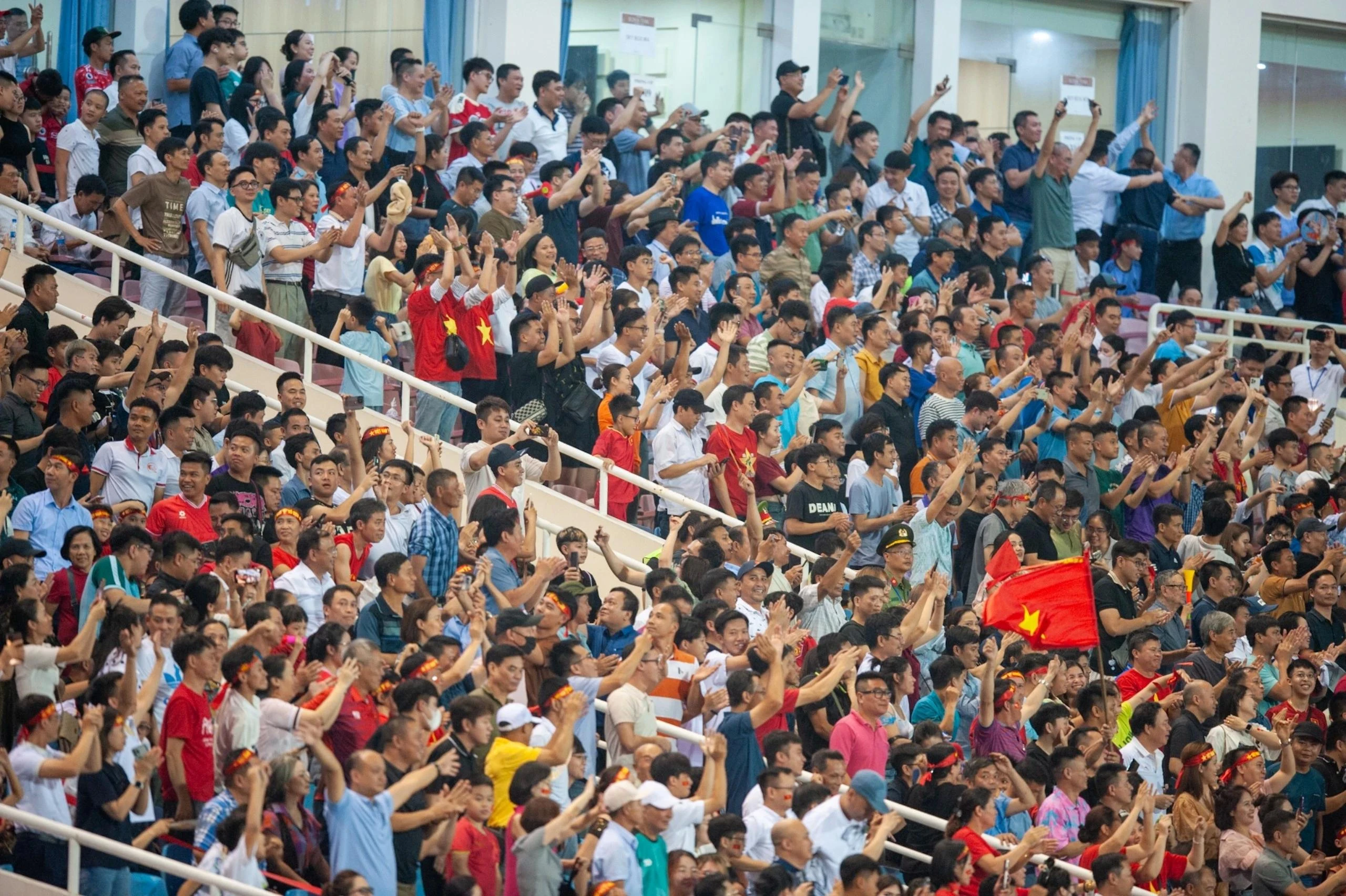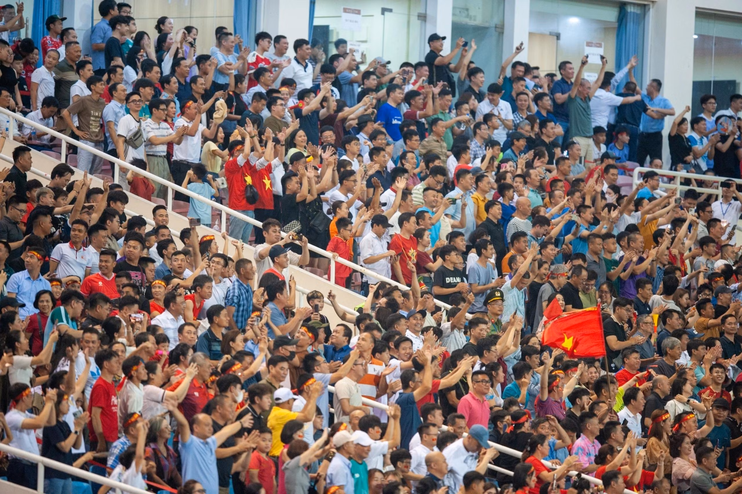 Khán đài Mỹ Đình bùng nổ cảm xúc trước màn thể hiện ấn tượng của tuyển Việt Nam. Ảnh: Minh Chiến, Thế Bằng.