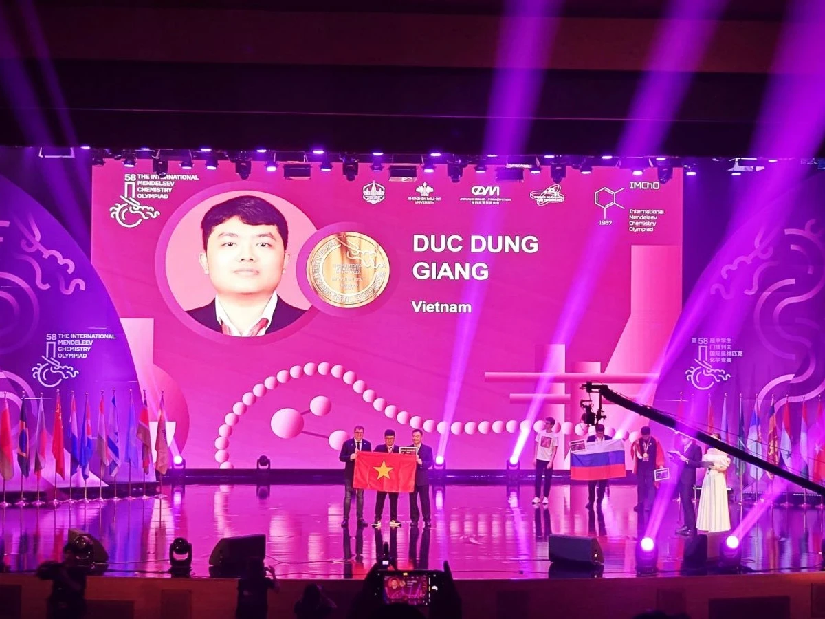 Giang Đức Dũng nhận huy chương vàng tại IMChO 2024 (Ảnh: Hội Hóa học Việt Nam).
