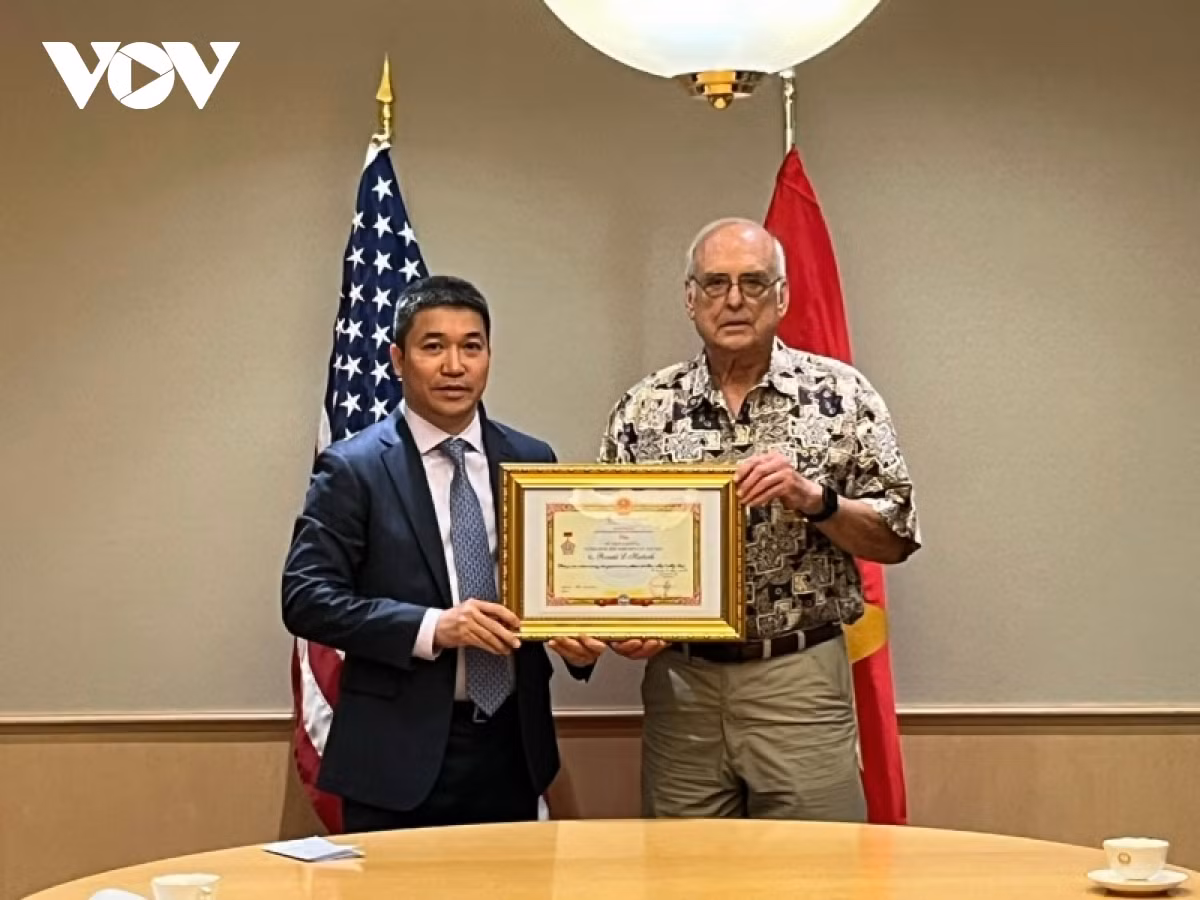 Trao kỷ niệm chương cho ông Ronald Haeberle.