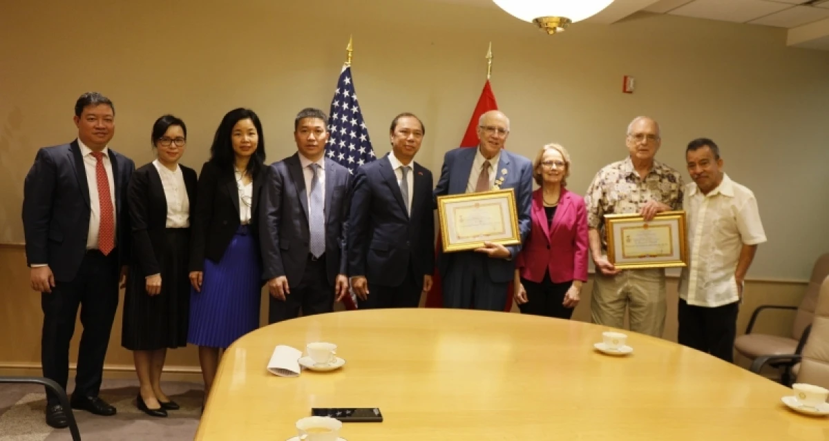 Lễ trao Kỷ niệm chương cho những người bạn Mỹ.