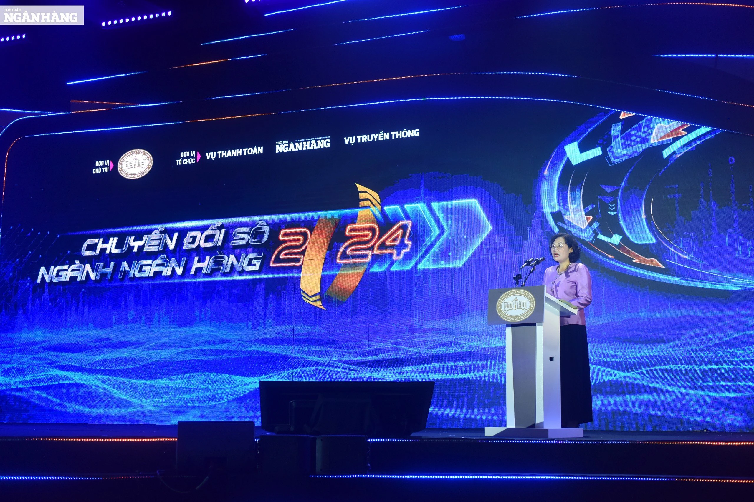 Thống đốc NHNN Nguyễn Thị Hồng phát biểu tại sự kiện Ngày Chuyển đổi số ngành ngân hàng năm 2024.