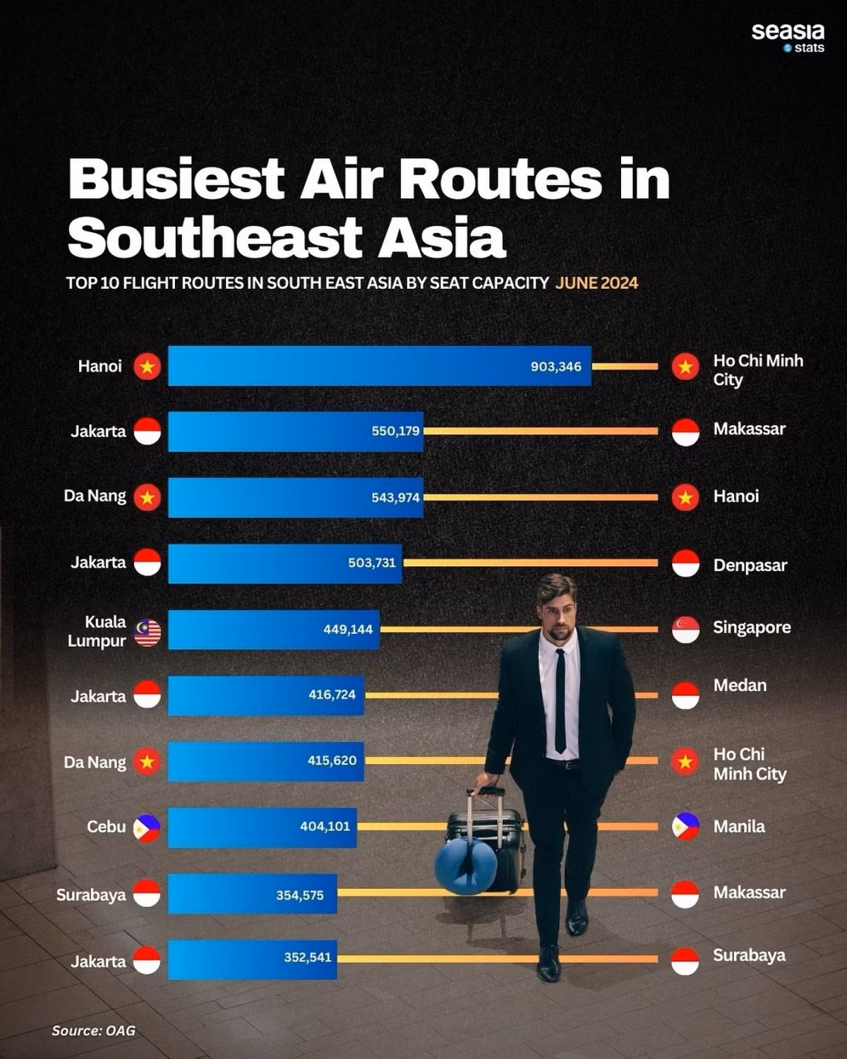 Việt Nam có 03 trong số 10 tuyến bay nội địa bận rộn nhất Đông Nam Á trong tháng 6/2024.