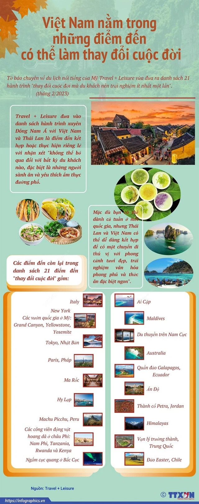 Tờ báo chuyên về du lịch nổi tiếng của Mỹ Travel + Leisure vừa đưa ra danh sách 21 hành trình "thay đổi cuộc đời mà du khách nên trải nghiệm ít nhất một lần".