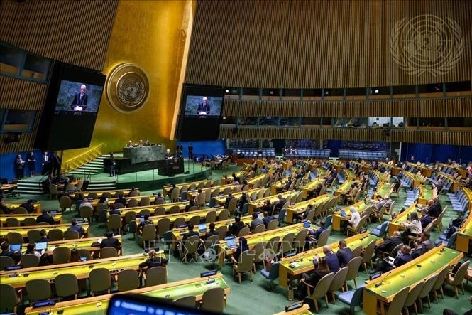 Toàn cảnh Phiên họp khẩn cấp đặc biệt của Đại hội đồng Liên hợp quốc về tình hình Gaza và vấn đề Palestine. Ảnh: TTXVN