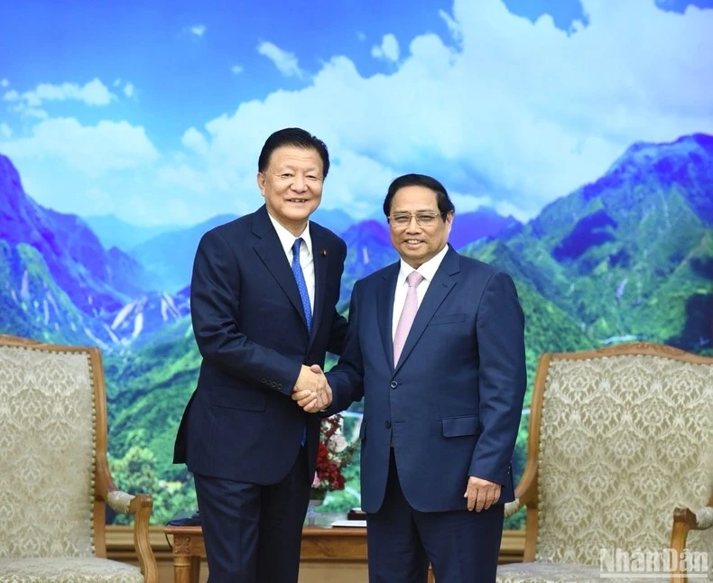 Thủ tướng cảm ơn sự hỗ trợ, ủng hộ của Nhật Bản dành cho Việt Nam; nhấn mạnh, hiện tại hai bên vẫn còn rất nhiều dư địa để khai thác những lợi thế, ưu đãi từ các khuôn khổ hợp tác mà hai bên là thành viên, đặc biệt là Hiệp định CPTPP với vai trò là một FTA thế hệ mới bao hàm nhiều cam kết sâu rộng; đề nghị Bộ trưởng tiếp tục có nhiều đóng góp nhằm làm sâu sắc hơn nữa sự hiểu biết và tin cậy lẫn nhau, thúc đẩy hợp tác thương mại song phương giữa hai nước trong thời gian tới.