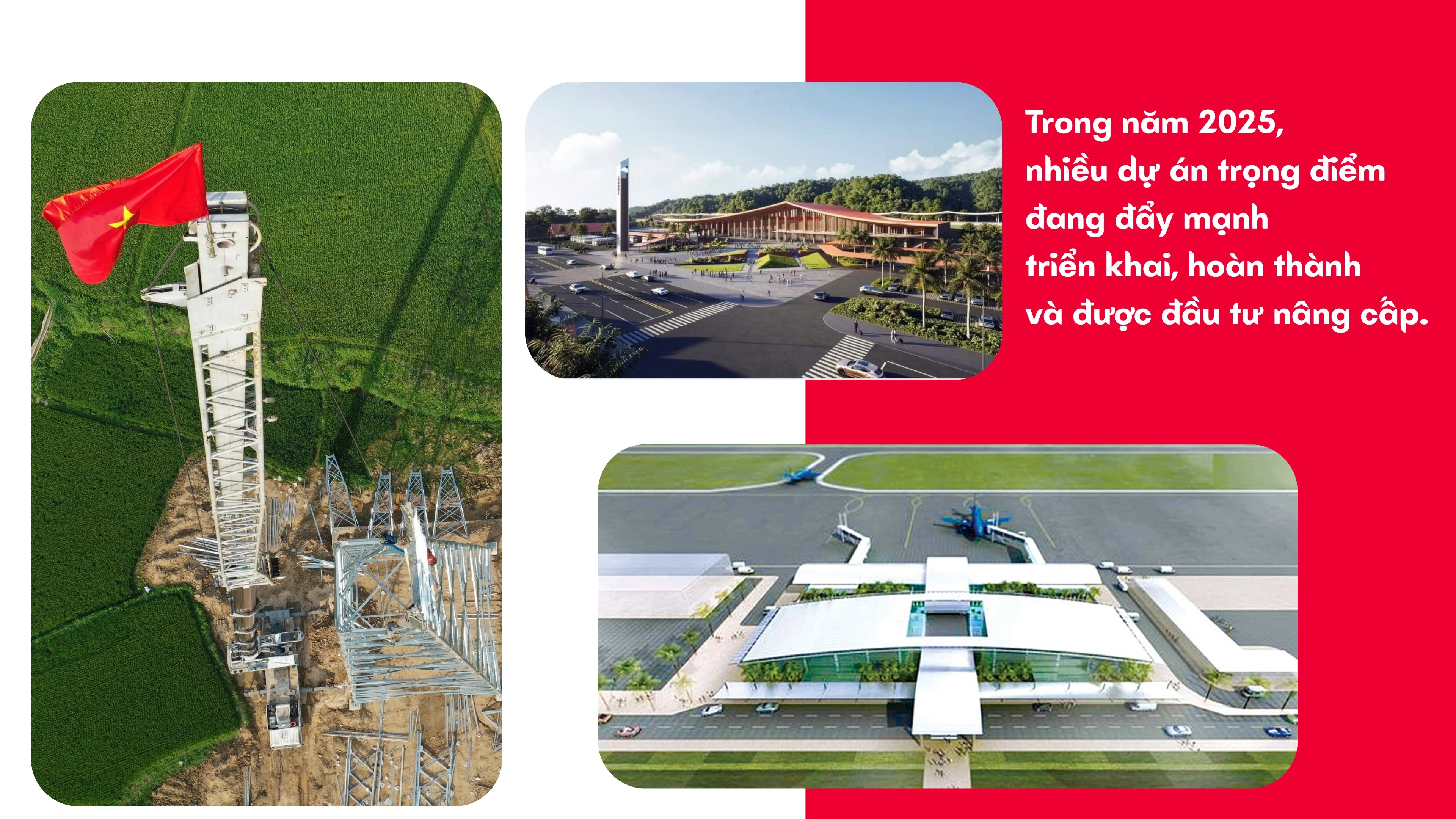Nhiều dự án trọng điểm đang đẩy mạnh triển khai như: Cảng hàng không Sa Pa, đường sắt Lào Cai - Hà Nội - Hải Phòng, cầu biên giới qua sông Hồng, Dự án đường dây 500kV Lào Cai - Vĩnh Yên; hoàn thành đầu tư nâng cấp, cải tạo 355 km quốc lộ, 650 km đường tỉnh, cùng hệ thống đường giao thông nông thôn... góp phần đẩy nhanh liên kết nội tỉnh cũng như kết nối với các tỉnh trong vùng.