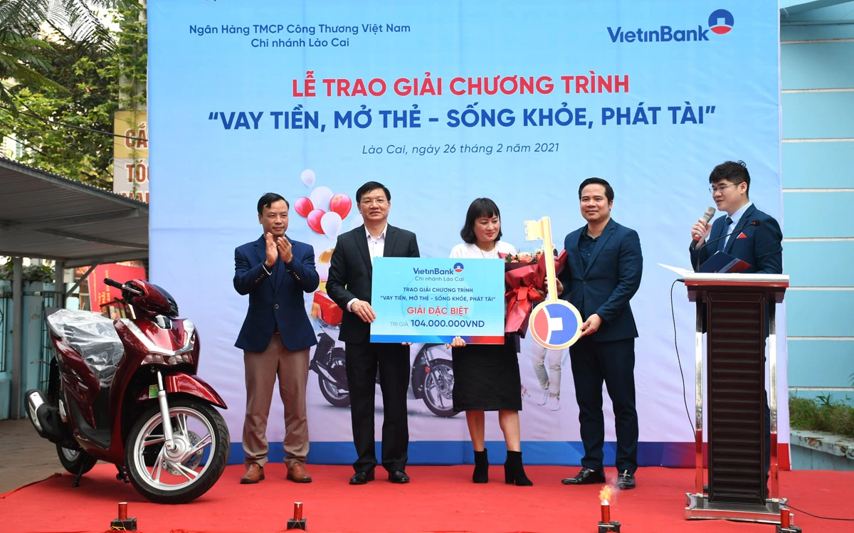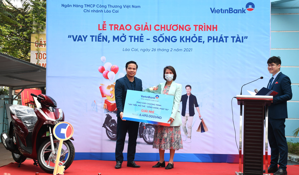 Chương trình “Vay tiền, mở thẻ - Sống khỏe, phát tài” do Vietinbank Việt Nam phát động trên toàn quốc từ ngày 12/10 - 15/11/2020 nhằm tri ân khách hàng nhân dịp đón năm mới và Tết Nguyên đán 2021 với tổng giá trị giải thưởng trên 1,5 tỷ đồng. Tại Lào Cai, đã có nhiều khách hàng tham gia chương trình và trúng thưởng.