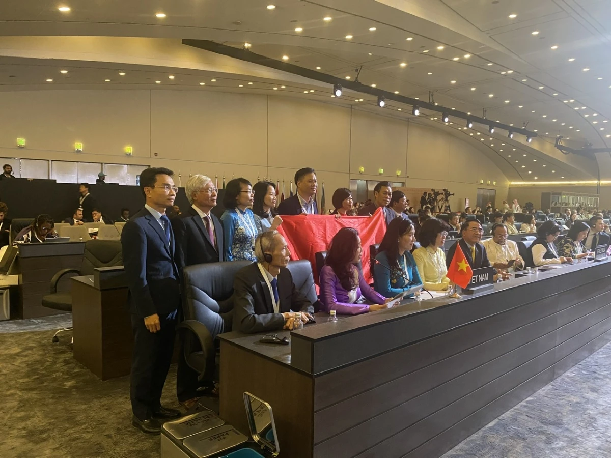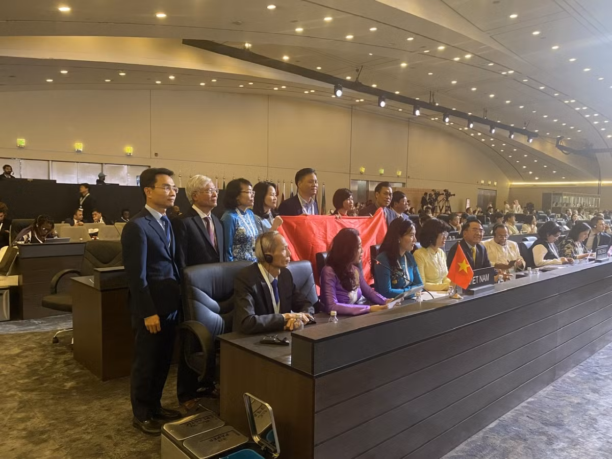 Đoàn Việt Nam tham dự Kỳ họp lần thứ 45 của Ủy ban Di sản Thế giới UNESCO. Ảnh: Đoàn công tác Việt Nam tại Riyadh, Saudi Arabia