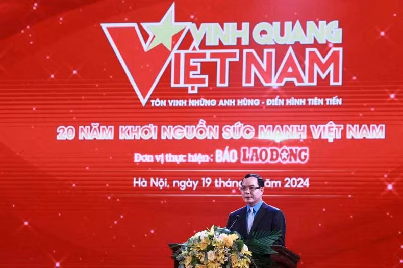 Đồng thời, ghi nhận, biểu dương Tổng liên đoàn Lao động Việt Nam và Báo Lao Động đã dành tâm huyết tổ chức thành công chương trình “Vinh quang Việt Nam” trong suốt 20 năm qua. Một chương trình có nhiều ý nghĩa, kịp thời động viên, cổ vũ, khích lệ các tập thể, cá nhân hăng hái thi đua, lao động sáng tạo trong sự nghiệp xây dựng và bảo vệ tổ quốc.