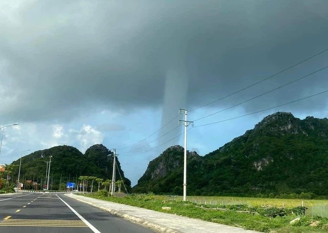 Vòi rồng xuất hiện ở khu vực biển xã Xuân Đám, huyện Cát Hải, Hải Phòng.