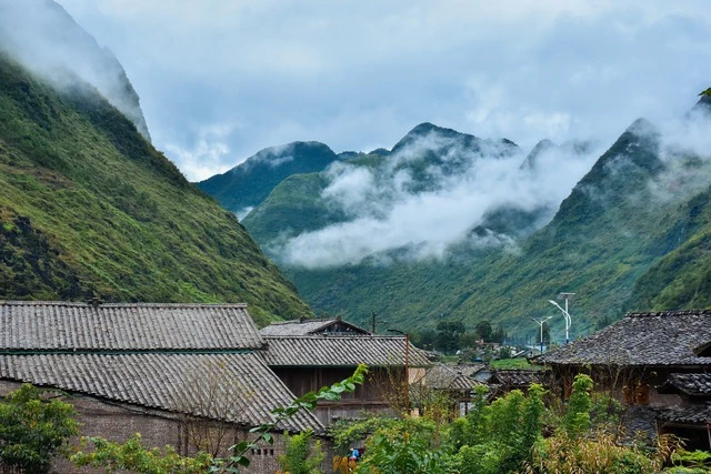 Buổi sớm mai, những đám mây lơ lửng gợn vào làng, chen mình trong những ngọn núi tạo nên khung cảnh hữu tình, Xuân Bắc ăn sáng và ngắm nhìn view "triệu đô" này.