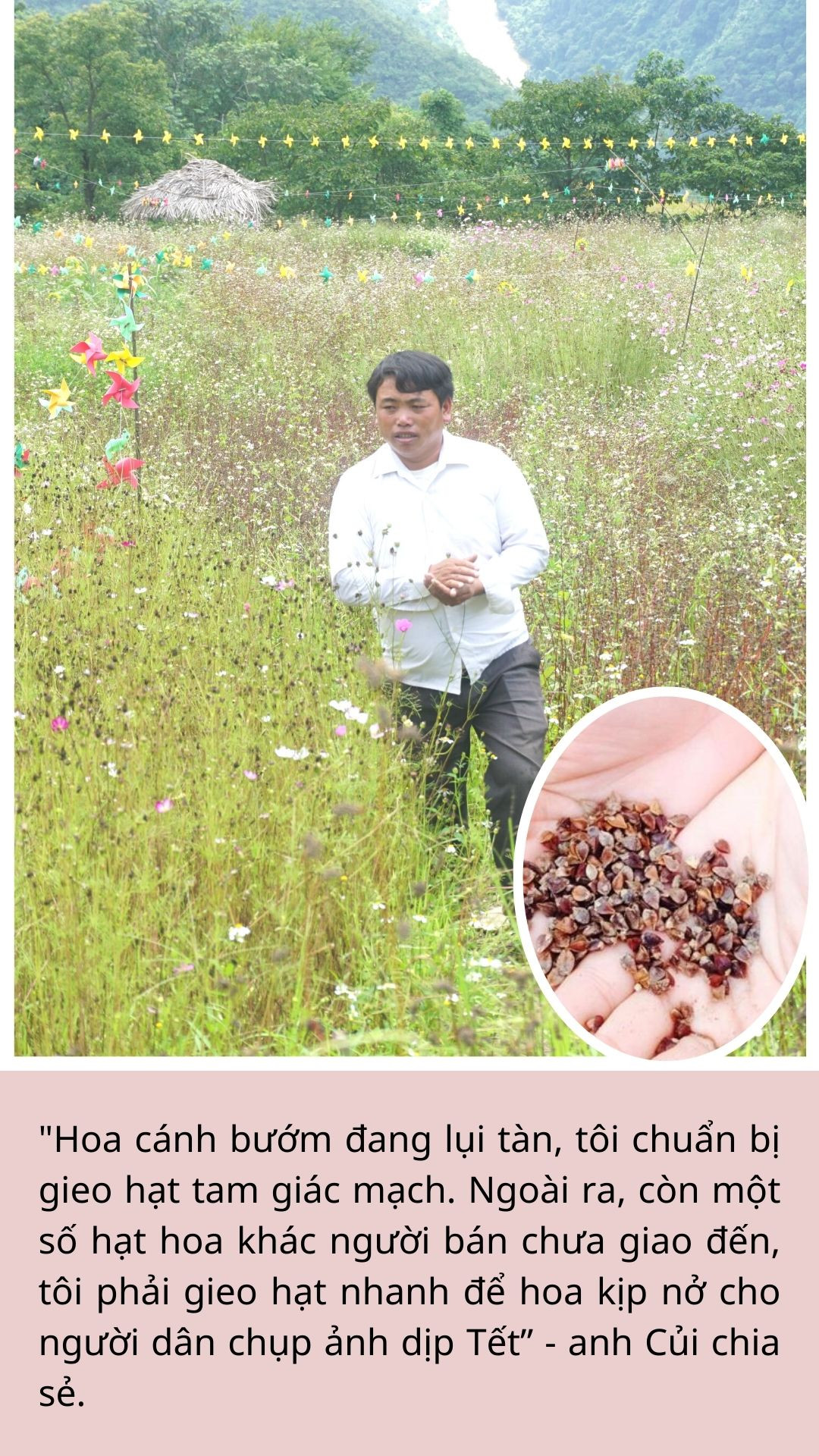 “Trường Sa cạn” đón tôi vào ngày nắng hanh hao. Vừ Seo Củi - người đầu tiên làm mô hình vườn hoa cho người dân trải nghiệm tại Tả Gia Khâu khoe với chúng tôi những túi hạt giống tam giác mạch anh vừa đặt mua từ Hà Giang.