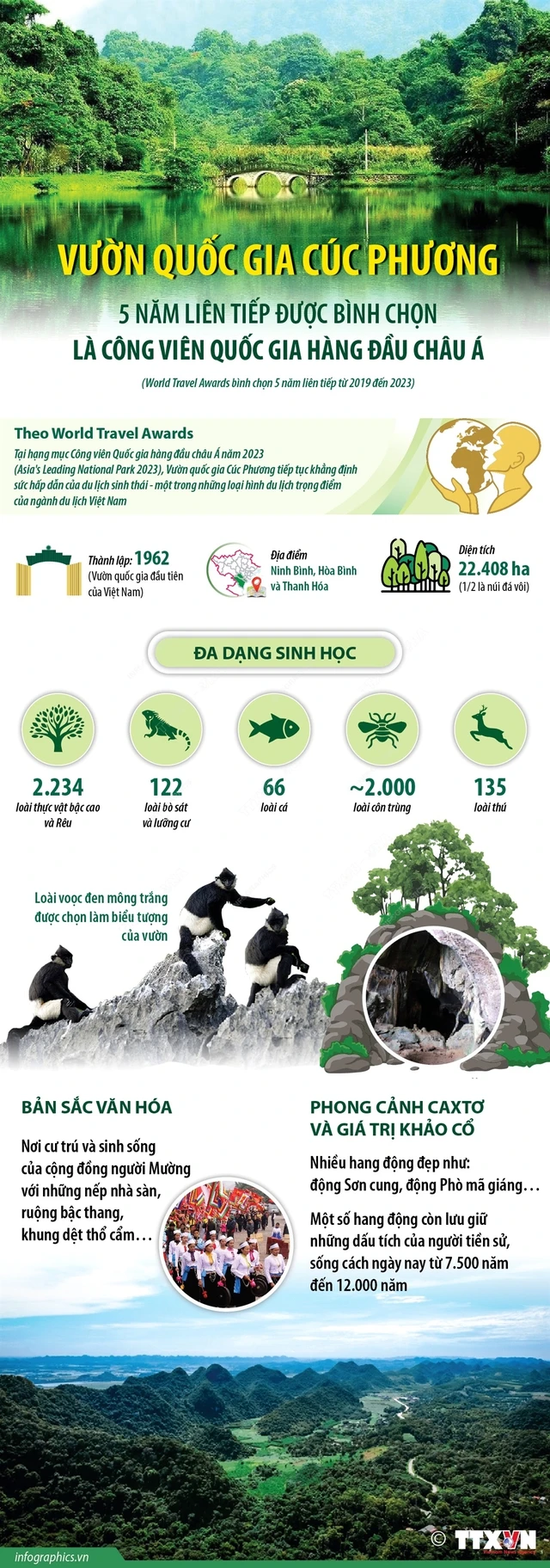 Với kết quả này, Cúc Phương 5 năm liên tiếp là Công viên Quốc gia hàng đầu châu Á từ năm 2019 đến 2023. Dự kiến, Lễ trao giải Công viên Quốc gia hàng đầu châu Á năm 2023 (Asia's Leading National Park 2023) sẽ diễn ra ngày 6/9/2023 tại TP Hồ Chí Minh.