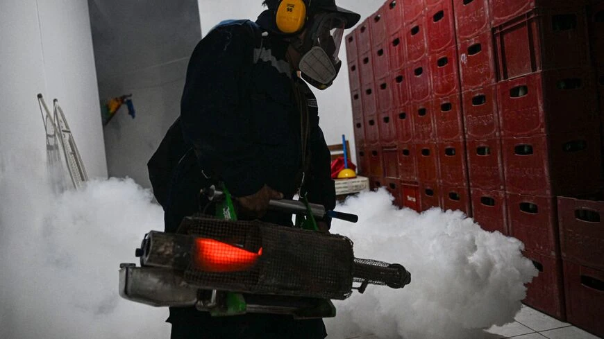 Một công nhân xịt thuốc diệt muỗi để ngăn chặn sự lây lan của bệnh sốt xuất huyết trong một khu phố ở Piura, phía bắc Peru ngày 11/6/2023.