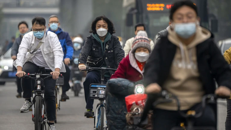 Người dân đeo khẩu trang khi di chuyển trên đường phố Bắc Kinh, Trung Quốc, tháng 10/2022.