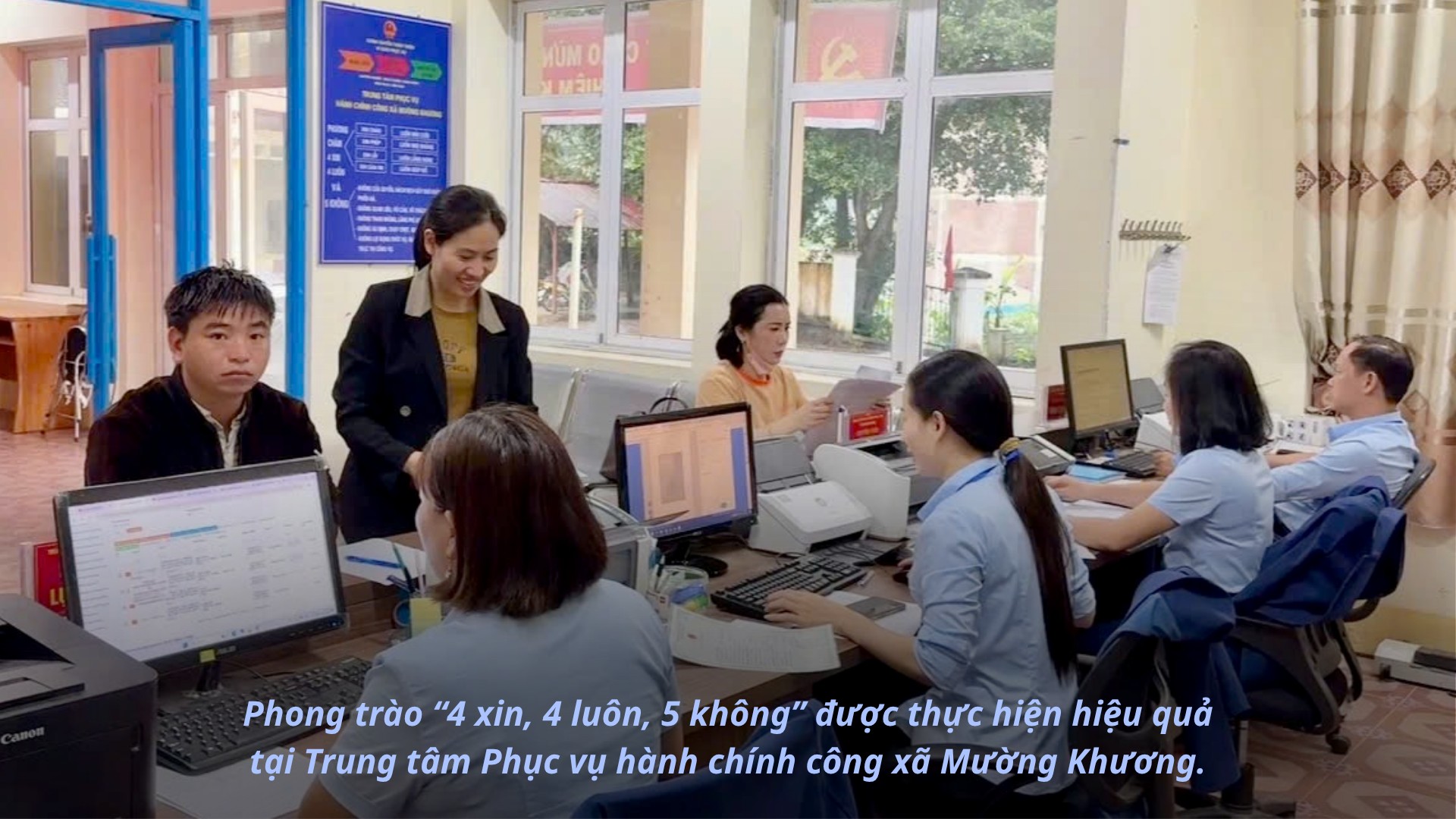 Đặc biệt, xã Mường Khương đã triển khai phương châm “4 xin, 4 luôn, 5 không” trong thực hiện dịch vụ công. Cụ thể, 4 xin là: xin chào, xin lỗi, xin cảm ơn, xin phép; 4 luôn là: luôn mỉm cười, luôn nhẹ nhàng, luôn lắng nghe, luôn giúp đỡ; 5 không là: không trễ hẹn, không gây phiền hà, không cửa quyền, không thiếu trách nhiệm, không né tránh.