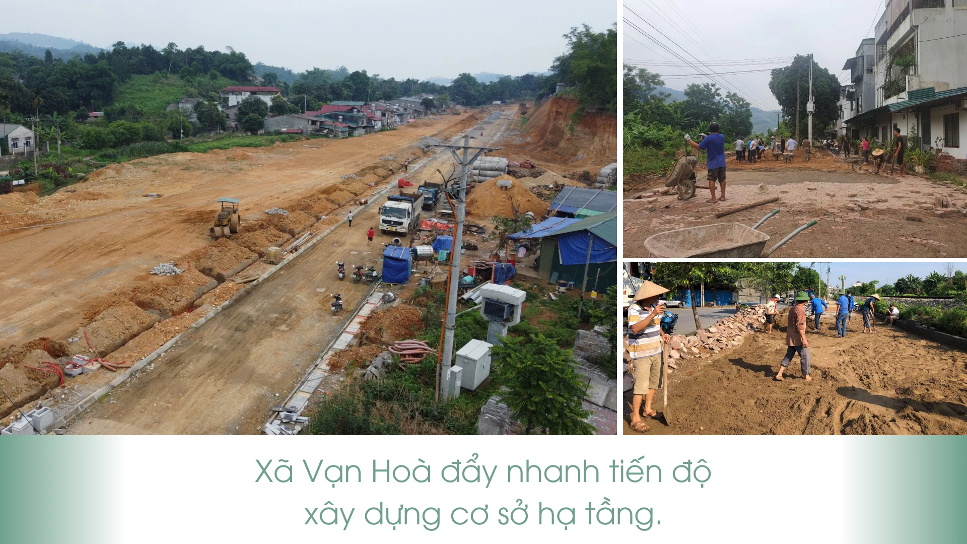 Tuy nhiên, đến nay xã đã đạt 12/13 tiêu chí tối thiểu trong tiêu chuẩn hệ thống hạ tầng cơ sở đô thị. Với quyết tâm sớm đạt 100% tiêu chí, thành phố đã đẩy mạnh triển khai hoàn thiện các dự án như khu đô thị mới Vạn Hòa, khu trung tâm hành chính xã, chợ và trường học; nghiệm thu, bàn giao các tuyến đường thuộc dự án 7 tuyến đường WB đã được thi công xong nhưng chưa đưa vào sử dụng.