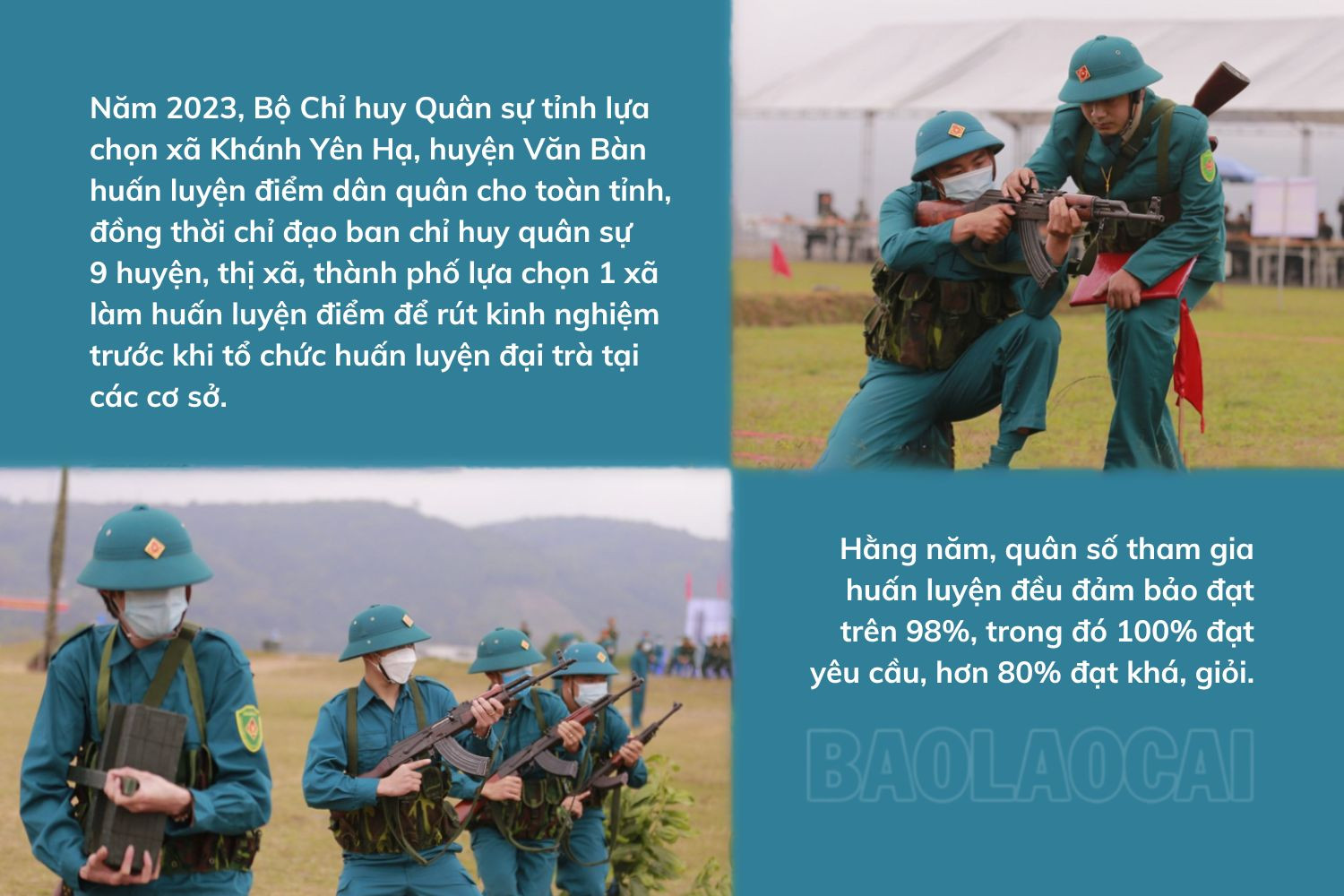 Không chỉ phát triển về số lượng, những năm qua, Bộ Chỉ huy Quân sự tỉnh đã tập trung nhiều giải pháp nhằm nâng cao chất lượng lực lượng DQTV. Trong năm 2022, Quân khu 2 đã chỉ đạo Bộ Chỉ huy Quân sự tỉnh lựa chọn thành phố Lào Cai làm điểm huấn luyện cho toàn quân khu.