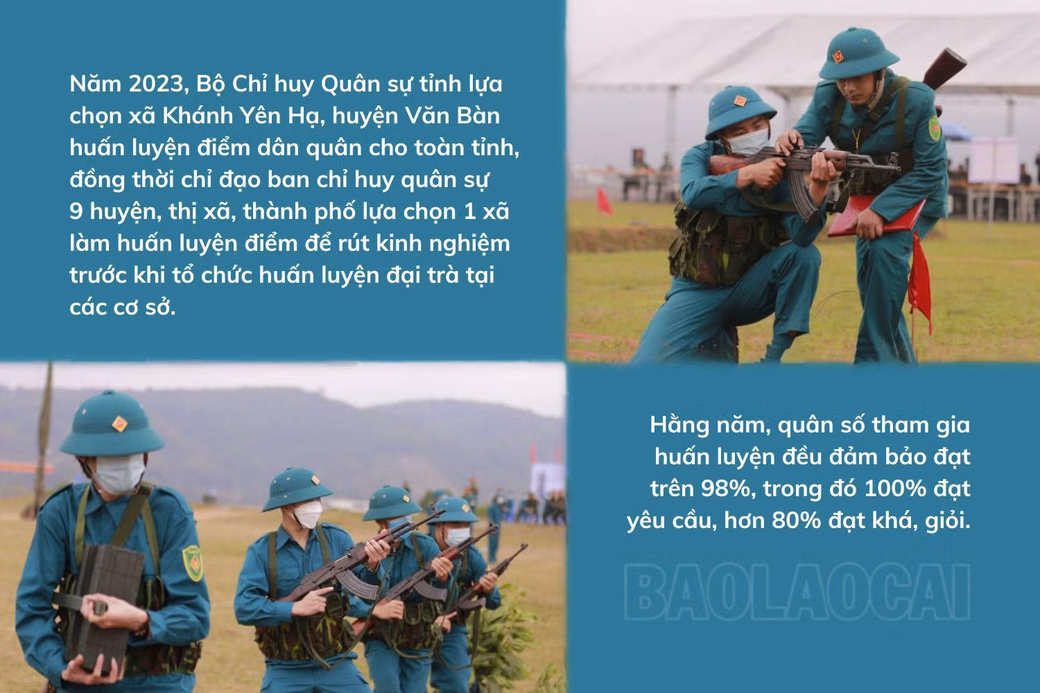 Hằng năm, quán triệt chỉ lệnh huấn luyện của cấp trên, Bộ Chỉ huy Quân sự tỉnh, ban chỉ huy quân sự các huyện, thị xã, thành phố và các xã, phường, thị trấn, cơ quan, đơn vị xây dựng kế hoạch huấn luyện phù hợp với tình hình thực tế của địa phương, cơ quan. Đồng chí Hoàng Văn Tin, Phó Chỉ huy trưởng Ban Chỉ huy Quân sự xã Lương Sơn, huyện Bảo Yên cho biết: Về biên chế, lực lượng dân quân xã đảm bảo đúng quy định pháp luật. Để nâng cao chất lượng công tác huấn luyện, Ban Chỉ huy Quân sự xã đã xây dựng kế hoạch, chuẩn bị chu đáo giáo án, mô hình học cụ, thao trường, bãi tập. Trong quá trình tổ chức huấn luyện, Ban Chỉ huy Quân sự xã chủ động đưa chiến sĩ năm thứ nhất tham gia huấn luyện tại Ban Chỉ huy Quân sự huyện. Kết quả công tác huấn luyện của xã được đánh giá đạt loại khá, quân số tham gia đều đạt yêu cầu trở lên.