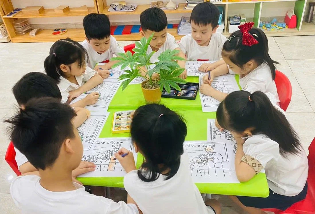 Trẻ em trên địa bàn tỉnh Yên Bái ngày càng được quan tâm, chăm lo học tập trong điều kiện tốt hơn. (Trong ảnh: Học sinh Trường Mầm non BabyStar, thành phố Yên Bái học tô màu)