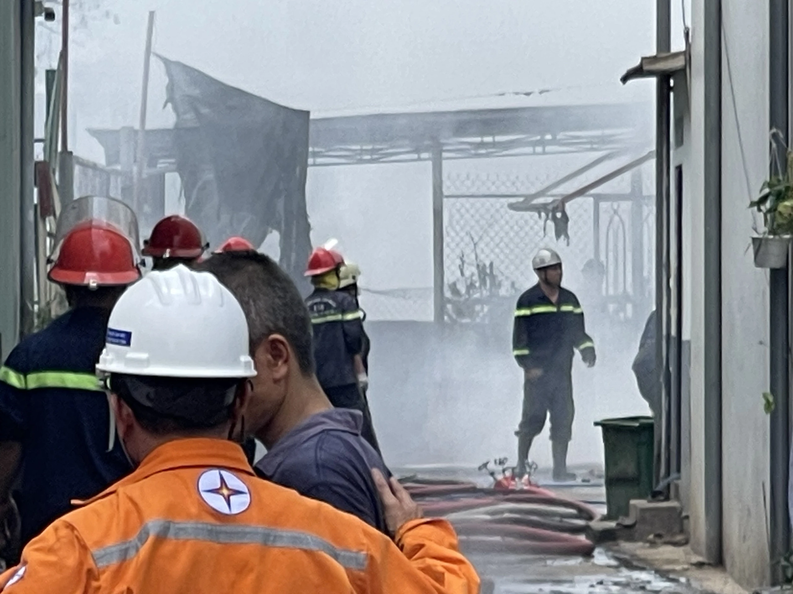 Xưởng bánh kẹo nhanh chóng chìm trong biển lửa, khói bốc cao nghi ngút.