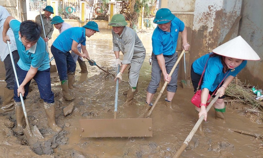 Cán bộ, đoàn viên, người lao động thành phố Yên Bái chung tay khắc phục hậu quả hoàn lưu cơn bão số 3.