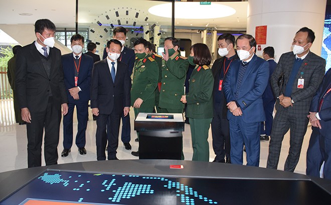 Các đồng chí lãnh đạo tỉnh Yên Bái tham quan Bảo tàng số của Tập đoàn Viettel.