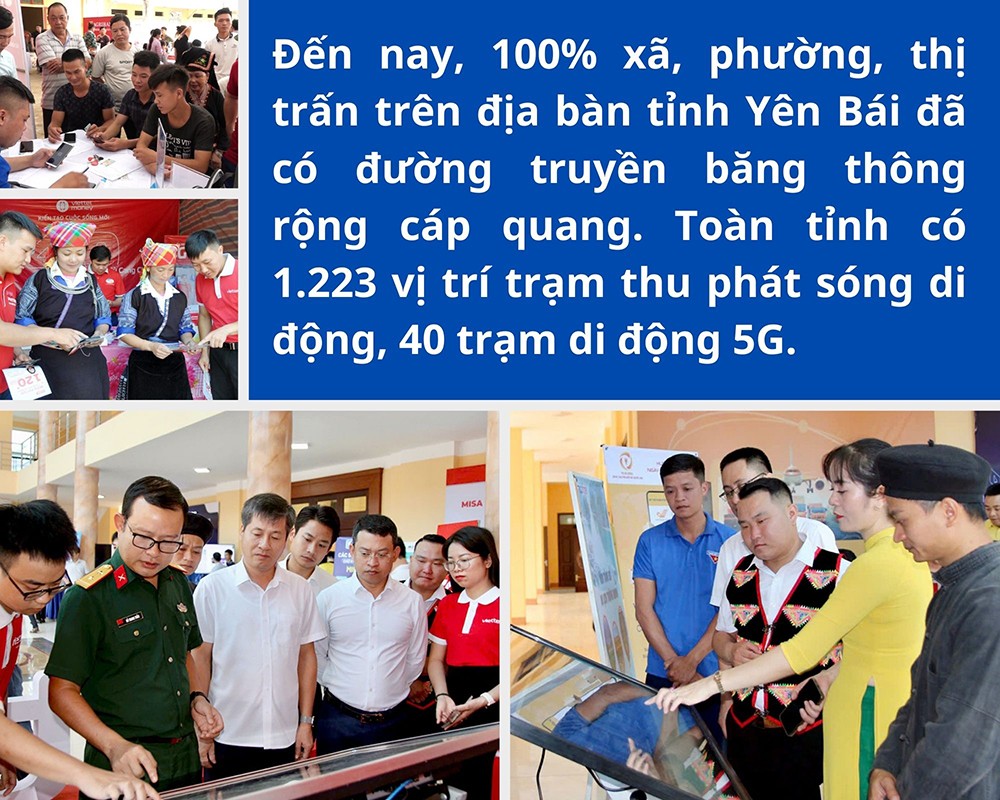 Đến nay, 100% xã, phường, thị trấn trên địa bàn tỉnh Yên Bái đã có đường truyền băng thông rộng cáp quang. Toàn tỉnh có 1.223 vị trí trạm thu phát sóng di động, 40 trạm di động 5G.