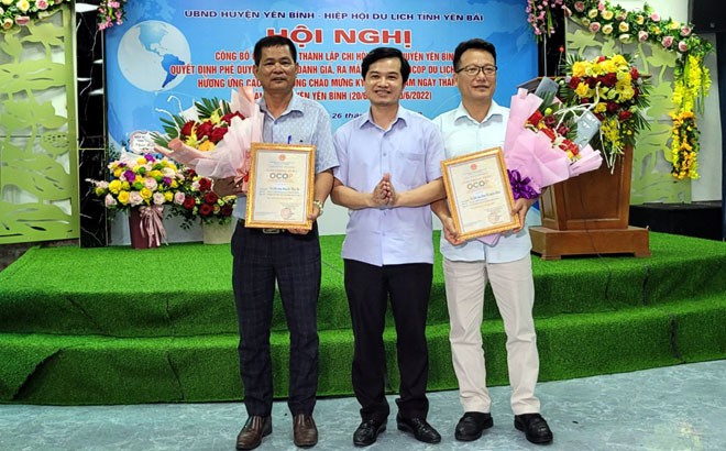 Dịp này, Ban tổ chức cũng đã công bố Quyết định của UBND tỉnh công nhận Du lịch cộng đồng hồ Thác Bà đạt sản phẩm OCOP 4 sao, Du lịch cộng đồng cội nguồn Ruby đạt sản phẩm 3 sao (ảnh trên). Trước đó, các đại biểu dự Hội nghị đã được trải nghiệm du lịch trên hồ Thác bà.