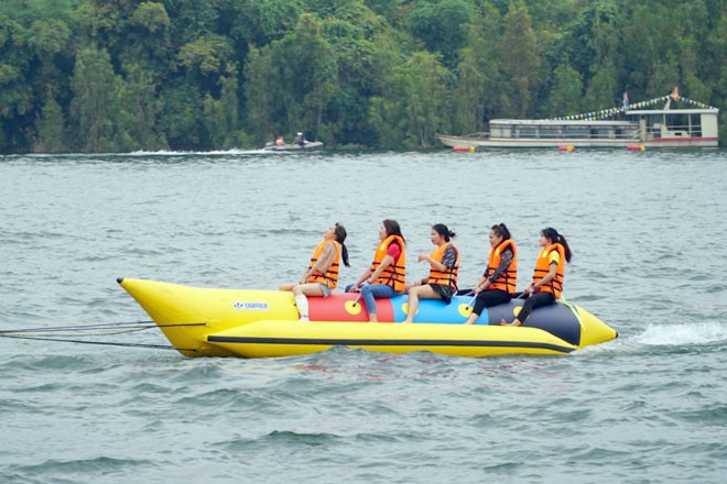 Du khách trải nghiệm hoạt động thể thao dưới nước.
